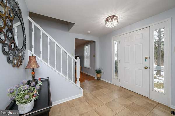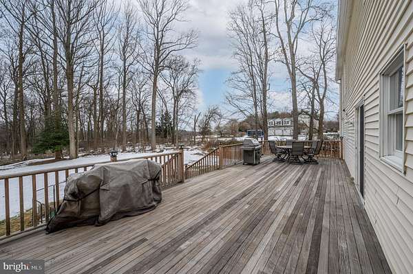 Welcome Home! Beautiful 4 Bed 2.5 Bath Colonial in Chesterfield is ready and waiting for you! Meticulously maintained inside and out, just pack your bags and move right in! Situated on a large lot, this property offers privacy with serene wooded views. The Foyer entry welcomes you in to find a large Living Rm with gleaming hardwood floors and recessed lighting. A seamless flow to the Formal Dining Rm creates the perfect space for entertaining guests. The Eat-in Kitchen features SS appliances, Granite counters, decorative tile backsplash, recessed lighting, a plethora of cabinetry, and a passthrough window through to the separate dining area, great for easy conversation. Sliding glass doors here will lead you to the rear deck. Unwind in the spacious Family Rm boasting a wood burning fireplace, perfect for these chilly winter nights. A 1/2 Bath and Laundry Rm will complete this main level. Upstairs, the main full bath with tub shower + 4 generous Bedrooms inc the primary suite. Primary Bedroom features a large walk-in closet and private ensuite bath with tub shower. The Bonus Rm on this level is so convenient and would be great as a guest rm, home office, playroom, tv room, etc. Full basement just waiting to be finished to add to the living space. Relax outdoors in the spacious backyard, complete with a 37x14 IPE Brazilian wood deck, invisible fence, and plenty of space to build and play. The oversized 3 car garage and driveway provides ample parking space for you and guests. Close to shopping, dining, parks, and schools + easy access to Routes 206, 130, 295, and the New Jersey Turnpike. Approximately 15 minutes to the Hamilton train station, and Joint Base McGuire Dix Lakehurst. Don't miss the chance to make this your new home sweet home. Come & see TODAY!