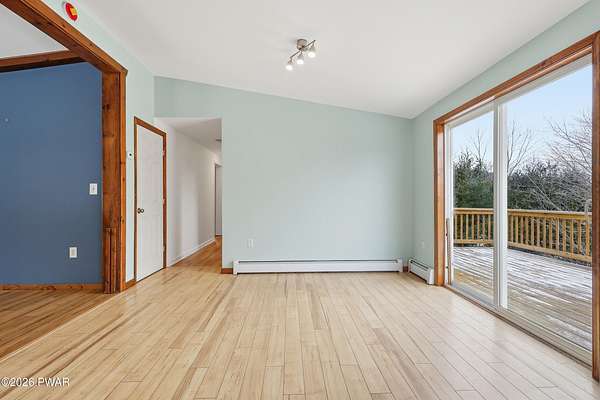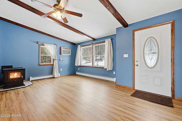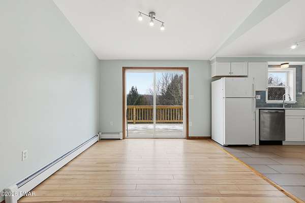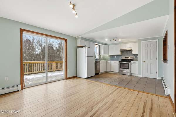 Set on a private acreage surrounded by thousands of acres of protected lands, this bright and beautifully updated home offers long-term privacy, a heated, saltwater, fenced in-ground swimming pool, and an ideal location just 15 minutes to Honesdale and 10 minutes to Narrowsburg. As you arrive, you're immediately welcomed by a peaceful, secluded setting where the surrounding land ensures privacy that will never change. The long approach and natural landscape create a true sense of retreat, while the home's well-maintained exterior reflects the care and pride of ownership found throughout. Step inside to a light-filled interior featuring newer flooring, tasteful updates, and an inviting atmosphere that feels comfortable and warm. The main living spaces flow naturally through the living room, dining area, and updated kitchen, making the layout ideal for both everyday living and entertaining. The kitchen offers modern finishes, ample workspace, and excellent functionality, while the dining area is perfectly positioned for gatherings with family and friends. Nicely sized bedrooms and updated bathrooms complete the main level, all maintained in mint condition. The full basement with a solid cinderblock foundation provides excellent potential for additional finished living space, such as a family room, recreation area, home gym, or office, and includes a two-car garage beneath the home offering convenient parking and storage. Back outside, enjoy the expansive deck overlooking your private backyard, perfect for relaxing or entertaining. Continue down to your practically brand-new heated in-ground swimming pool, fully fenced for safety and designed for extended seasonal enjoyment from May through October. With generous outdoor space, exceptional privacy, and year-round usability, this property offers a rare opportunity to own a truly private home in an outstanding location.