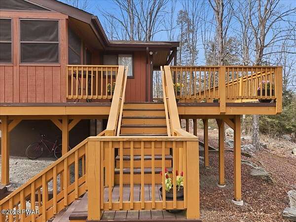 Welcome to your private lakeside retreat on the serene, electric only Lake in the Woods. Set on 1.6 acres with an impressive 560 feet of lake frontage, this TURN KEY 4-bedroom, 2-bath home offers approximately 1,700 square feet of living space and the kind of peaceful setting buyers dream about.Step inside to find a warm and inviting layout designed for both relaxation and entertaining. The true showstopper is the oversized second-story deck, where you'll enjoy unobstructed lake views--perfect for morning coffee, sunset dinners, or simply soaking in the quiet beauty of nature.Whether you're searching for a full-time residence or vacation home, this property delivers. Located just a short drive from Lake Wallenpaupack and Tannersville, you'll have easy access to boating, skiing, shopping, dining, and year-round recreation.Set within the highly desirable Wallenpaupack Area School District, this property combines location, privacy, and waterfront charm in one exceptional offering.