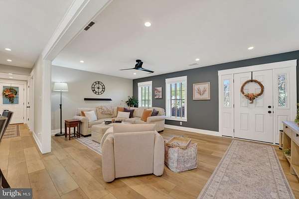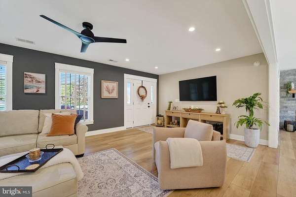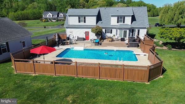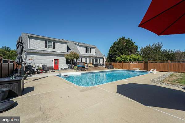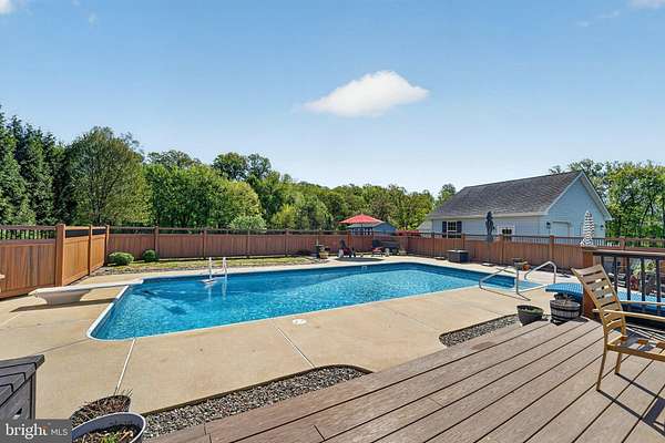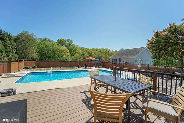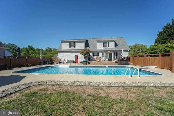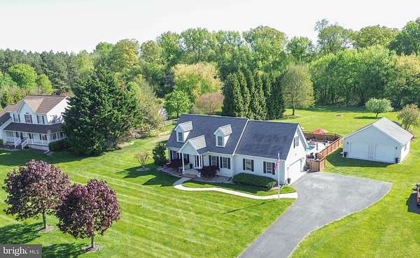 Beautifully updated home in sought-after Claiborne Fields in Centreville, offering 3 bedrooms and 3 baths on a picturesque 1.5-acre lot. This exceptional property features a stunning outdoor setting with an in-ground saltwater pool, surrounded by Trex decking, a decorative vinyl fence, and an additional electric invisible dog fence-perfect for relaxing or entertaining-along with a detached 2-car garage> The fully renovated first floor (2023) showcases new luxury vinyl plank flooring and a gourmet kitchen equipped with Matte Black Smart GE Cafe appliances, including an induction Glide Touch cooktop, single wall oven with True European convection, built-in convection/smart microwave, beverage and wine center, and BEST Cattura downdraft. A convenient 16" round bar sink is perfectly positioned in the beverage center nook for easy entertaining. The primary suite offers hardwood floors and a spa tub, creating a true retreat. Additional interior features include new carpet, an interior custom-built dog kennel, with Dutch door and dedicated shower room, and a propane fireplace added during the 2023 renovation. A generator, located in the detached garage, provides added peace of mind. Energy-efficient upgrades include a 2026 energy audit, encapsulated crawl space, attic insulation, air-sealed attic, and a commercial-grade dehumidifier. Anderson windows and Hunter Douglas blinds enhance both comfort and style. Numerous updates include a 2019 Black Stainless refrigerator and dishwasher, resealed driveway, new pool liner, and conversion to a saltwater pool (2021), making this home truly move-in ready. See estimated Square Footage Floor Plans Photos of Square footage is approximate and not guaranteed. Listing information, including total square footage and floor plans, is not believed to be accurate and is not verified which should not be relied upon; all measurements are estimates and subject to buyer verification. Ideally located close to downtown Centreville and convenient to Rt. 301 for easy access to Kent Island ,Annapolis, Ocean City, and Delaware.