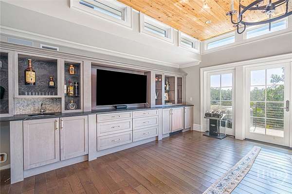 - Attic, Bathtub, Butler's Pantry, Ceiling Fan(s), Double Vanity, Elevator, Entrance Foyer, Fireplace, Gourmet Kitchen, High Ceilings, Kitchen Island, Main Level Primary, Primary Suite, Programmable Thermostat, Recessed Lighting, Separate Shower, Split Bedrooms, Wet Bar, Wired For Sound