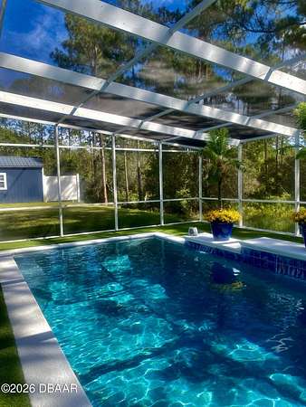 This three thousand square foot sprawling Barndominium is a must-see at 108 Conifer Lane, Ormond Beach, Florida. Blending rustic charm with modern flair on almost four acres, it boasts a heated saltwater pool, 36x36 oversized garage, perfect for all your toys, vaulted ceilings, huge windows, a peaceful pond out front, a massive lanai patio-entertainer's delight-and a charming pool house perfect for guests. The massive kitchen shines with granite counters, top-tier appliances, a huge island and huge walk-in pantry, while a grand stone fireplace warms the open space. This home is sure to wow you the minute you walk in the door.