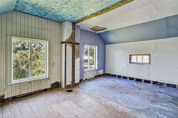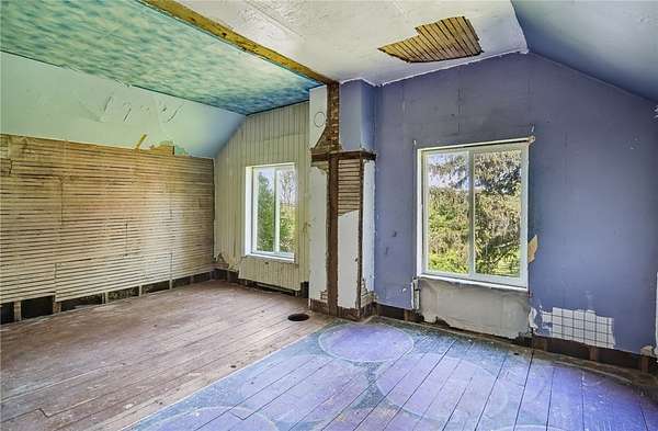 A tale of two houses. This duplex offers individuals or investors alike an incredible opportunity. A side by side duplex; one side completely finished and the other a blank slate. Live in one and fix up the other, rent one and fix up the other, or knock down the wall in between and create the gorgeous single family of your dreams. The possibilities are endless. Beautiful views and privacy make this house the perfect location. Over three acres and no neighbors on three sides give you the peace and tranquility you are looking for. This property boasts a luxurious wrap around driveway and an oversized, just built, two car garage. The foundation has been recently redone to the highest of standards, the septic is brand new, and much of the plumbing and electric is brand new as well. The unfinished side is rough around the edges but the location, garage, finished apartment, and opportunities make this a must see for everyone.