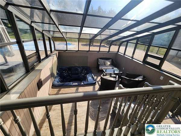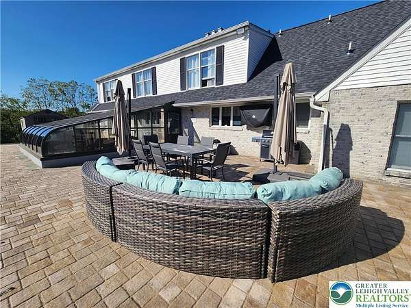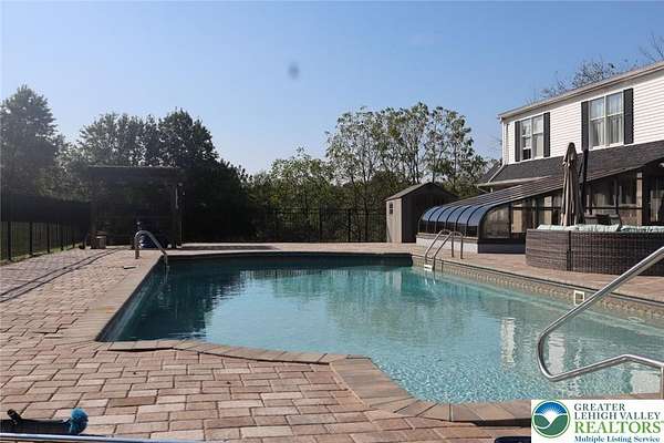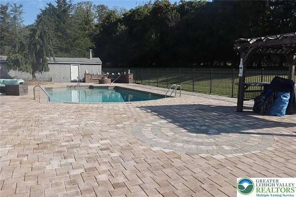 Discover your dream home in this beautifully designed cape, nestled on a serene 9 acres in Nazareth School District. This stunning residence boasts an impressive layout featuring 4 spacious bedrooms, 4.5 bathrooms along with a generous 3 car garage. Ideal for entertaining and accommodating family and friends. Elegant tile flooring that flows seamlessly throughout the first level. Magnificent kitchen with a gorgeous wood burning fireplace, beautiful granite counters, stainless steel appliances and plenty of storage. Sunroom with Hot Tub, In ground heated pool with a stunning paver patio surrounding the pool creating an ideal space for entertaining and relaxing.The lower level has another wood burning fireplace, in law suite, epoxy floors, rec area, and theatre room. Added for convenience, a generator plug-in for uninterrupted power. Don't miss your opportunity to make this your forever home. Call and schedule your appointment today!