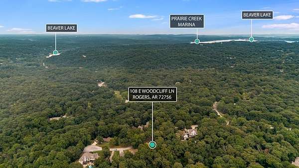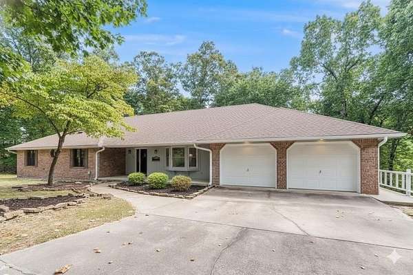 Single story all brick home located on 1.5 acres in a Hyland Park cul-de-sac, close to Downtown Rogers & Prairie Creek Marina. Relax on the front porch or the deck that wraps around the entire back. The large living room has a cathedral ceiling, 2 skylights & a wood/gas burning fireplace. French doors separate the living room from the kitchen. Kitchen features granite counters, eat-in kitchen, built in desk & a beautiful bay window over the sink with views of the wooded backyard. Off the kitchen is a pantry & over-sized laundry utility room w/ half bath & tons of cabinets. At the front of the house, there is a very large bonus room w/ bay windows that can be used as a dining room, office or second living space. The primary bedroom includes access to the deck & ensuite area w/ vanity & walk-in closet. The other two bedrooms are oversized w/ large closets & one connects to the 2nd bathroom. Under the deck is access to an enclosed storage room w/6ft clearance. Roof was replaced approx. 6 years ago. Septic pumped 2023.
