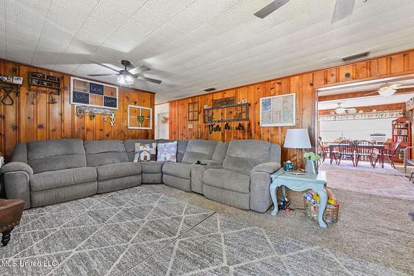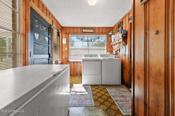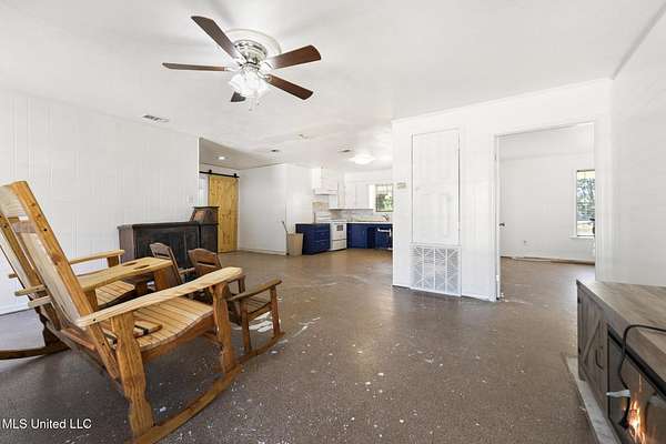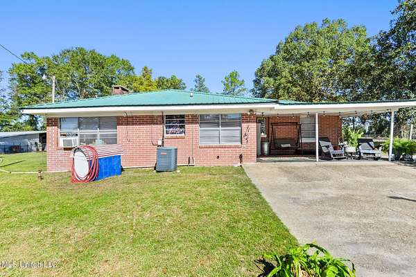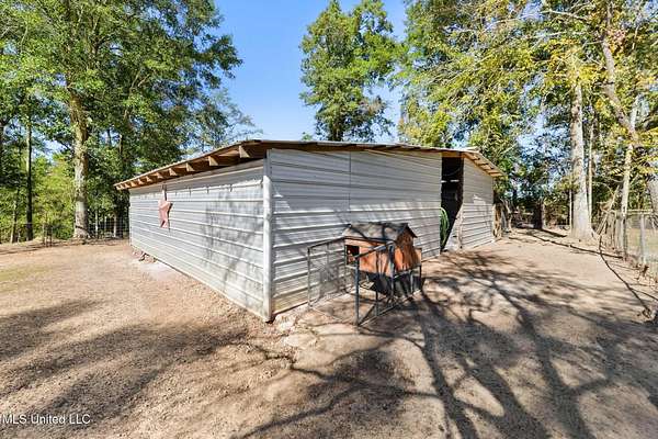 This unique home, built in 1962, sits on 3.5 peaceful acres in the desirable Rocky Creek community of George County. This home features a comfortable living area with a fireplace, three bedrooms, and two bathrooms with 1776 sq. ft. of living space. All appliances remain, including two refrigerators, oven, washer, and dryer. A carport and detached carport provide extra parking. On the property, you'll find a 1,320 sq. ft. storage building with a kitchen, living area, bathroom, two rooms, and an attached carport. The property includes a separate garage with storage, and a barn located in a fenced area perfect for livestock. All buildings are fully fenced, and the land provides plenty of space. This property combines country living, privacy, and versatility making it ideal as a family home or investment property.