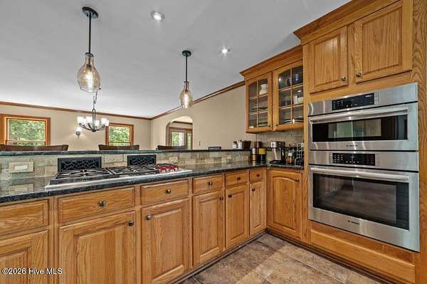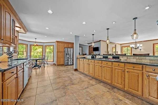 Room to grow, space to roam, and river life right outside your door. Set on nearly 5.5 acres along the Tar River, this one-of-a-kind property offers the kind of freedom families dream about--whether that's horses in the pasture, a thriving garden, kids exploring the outdoors, or afternoons spent on the water. Tucked down a private, wooded drive, the home reveals itself with welcoming charm and peaceful river views that instantly make you exhale. There's a sense of space here--inside and out--that's hard to find this close to Greenville. Step inside to warm hardwood floors and comfortable, inviting spaces designed for everyday living. The front living room with built-ins and a fireplace is versatile and currently a billiard room to gather with river views just beyond. The two-story den is the heart of the home, filled with natural light and anchored by a wall of windows that keeps you connected to the outdoors year-round. The kitchen offers plenty of room to gather, cook, and connect--all the while overlooking nature and the river. This space features granite countertops, solid wood cabinetry, gas cooktop, double ovens, a pantry and an easy flow into both the breakfast area and formal dining room. It's a layout that works just as well for busy mornings as it does for holidays and celebrations. There is a convenient half bath and laundry room, just off garage access. As you venture upstairs you will find the primary suite which is a quiet retreat, recently remodeled with a spa-like bath, soaking tub, oversized walk-in shower, and a large walk-in closet. The adjoining flex room gives you options--nursery, workout space, or a private office. You will also find three additional spacious bedrooms and two full baths, offering room for everyone to spread out. Outside is where life really happens. With open land ready for gardens, a fenced front pasture area ideal for horses, and endless room to play, including a pond -this property invites you to slow down and enjoy it all. Spend evenings on the screened porch, host gatherings on the deck, or head down to your private dock --complete with boat lift--for fishing, kayaking, or sunset cruises on the Tar River. The lower level offers additional flexible space for a workshop, storage, or hobby area. Backyard has new black ornamental fence to help secure pets and small children during playtime . Located just outside of Greenville, this property delivers the rare combination of privacy, land, and direct river access--perfect for those looking to create a lifestyle, not just find a home. Bring your horses, plant your gardens, and start living the river life !!