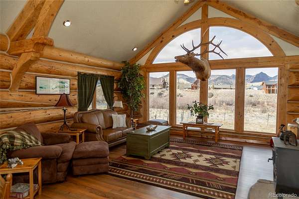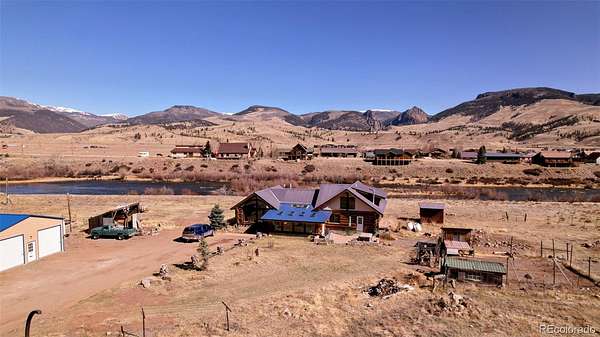Step into this breathtaking round log home on 5 acres with sweeping views of the Rio Grande. Built with natural round logs, the home offers year-round comfort warm in winter, cool in summer and reflects the craftsmanship and character of mountain living in every detail. The sunroom welcomes you to this home. A peaceful space that invites you to slow down and take in the light. From here, the 3,102 sq.ft. layout flows into a spacious, well-appointed eat-in kitchen. The grand living area features vaulted ceilings, hand-crafted beam accents, and stunning views of the river framed by the warmth and texture of log walls.