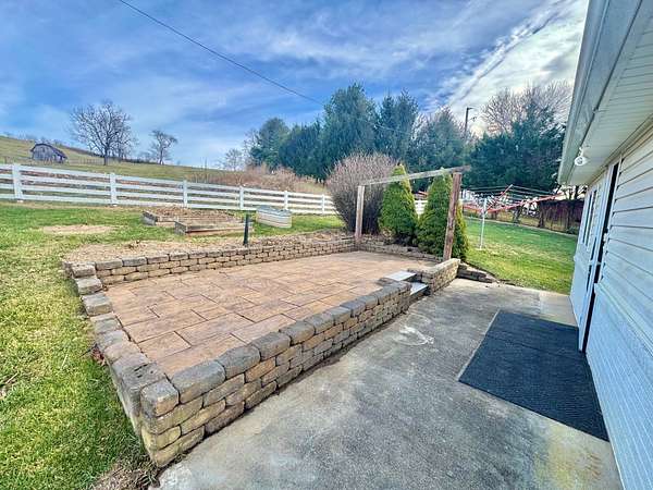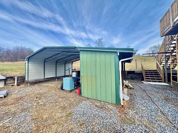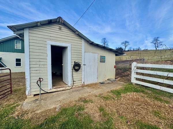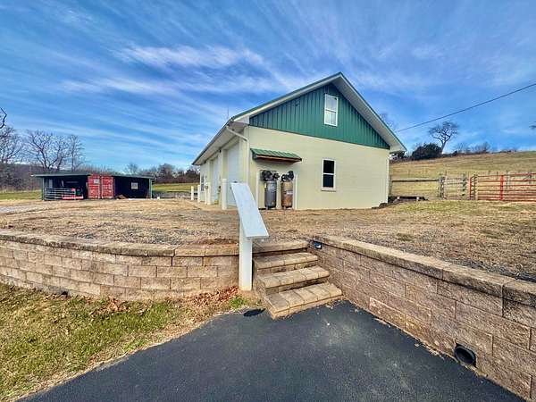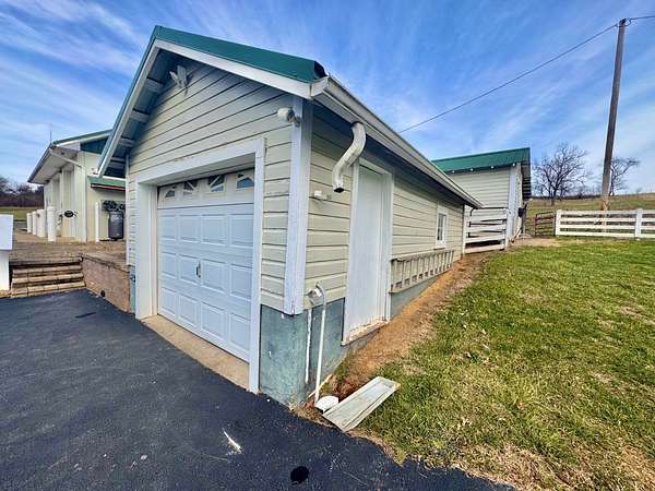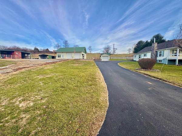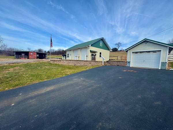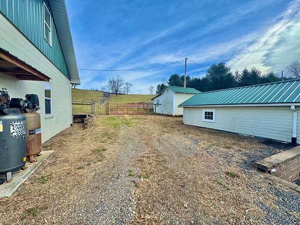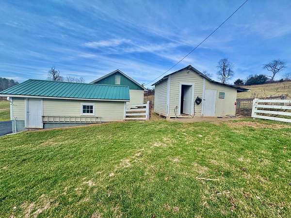 Cozy Farmhouse with 4.45 acres is ready for you! If you've dreamed of a mini-farm, here it is! 3 Bedrooms/1.5 Full Bath Move in Ready Bath has large shower/deep soaker tub. Oak Wood Flooring/Ceramic Tile Pull down stairs to attic extra storage Architechtural shingles approx 3 y.o New Hot Water Heater (Performance Platinum) Gas Range, Side by Side Refrigerator, Washer/Dryer Convey Fire Pit/Hot Tub Area (electricity in place) Office Area in back Mudroom/Basement steps in back house entrance Heating: New HVAC added 2024 (still under warranty) Propane Gas Logs Baseboard Heat Wood Stove with ductwork in basement 2 septic systems (one for garage one for house) Garage: Metal Roof/Metal and Block Siding 2 car garage w/ 10' doors Workshop area Commercial Vehicle lift can convey Wood Stove in garage Concrete floor, Sink, Pex Water (cold/hot) in garage Tankless Hot water heater in garage Studio: (newly finished) Studio overhead of garage with indoor/outdoor entrance Open 10x16 deck with a view Foyer area with cat/dog door to outside deck 2 New Mini-splits (12,000 BTU) (still under warranty) Flooring weatherproof LVP New Kitchenette with farmhouse sink Laundry hookups Can easily be rented/used as a mother in-law suite/used for residential and business use. Multiple Storage Buildings: Carport with Shed on the side (concrete pad flooring and power) Barn and Carport in Field for Animal Run-in's/Hay Storage Chicken Coop and Fenced Chicken Run Land: Fenced in/Crossfenced with 3 separate areas Graded area in field for equipment storage, pool, etc. Approximately 4 ac fenced in Convenient location: Easy access to 77/81 interchange on Route 52. Lots of Parking for larger vehicles/horse trailers/etc. Close to New River Trail/New River/Shot Tower/Foster Falls Recreational Area.