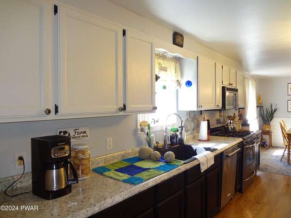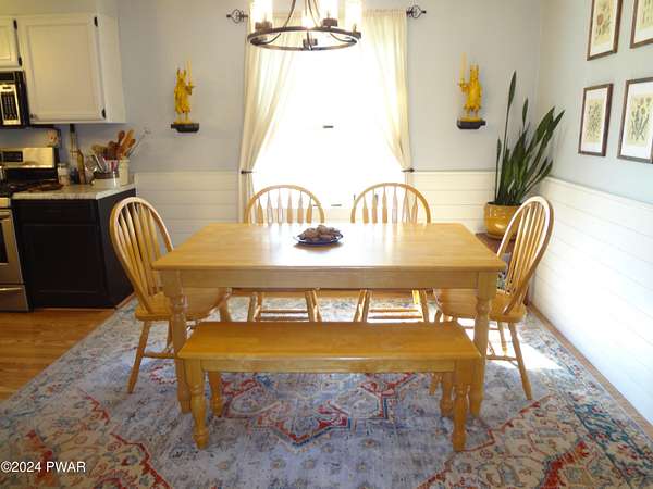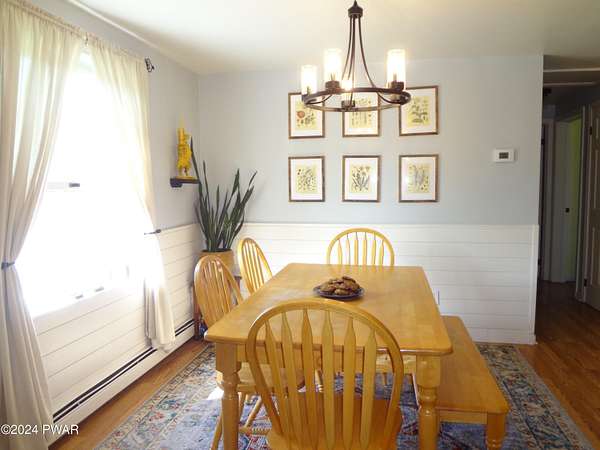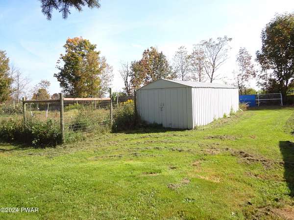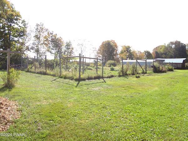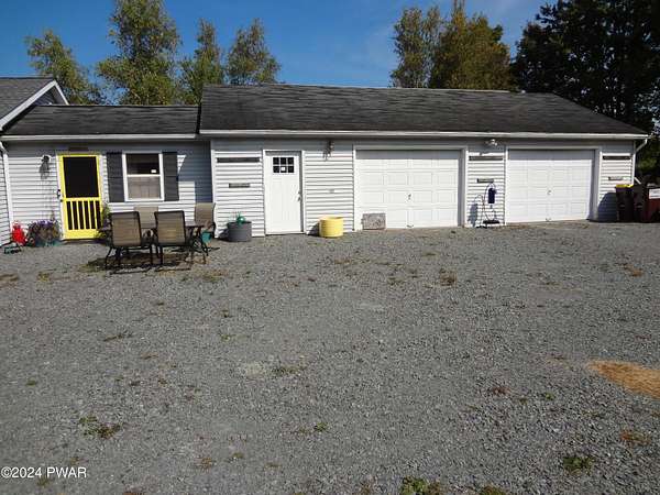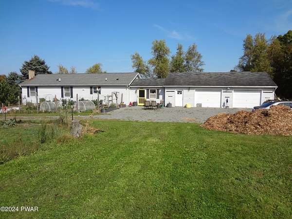 BREATHTAKING VIEWS! MINUTES TO BEAUTIFUL LAKE WALLENPAUPACK! This 3 Bedroom, 2 Bath Home sits on almost 5 acres with Fruit Trees, Grape Vines, Raspberry & Blueberry Bushes. One level living with Large Primary Suite, Large Eat-In Kitchen, Living Room with amazing views, 2 additional Bedrooms and a Full Unfinished Basement. Oversized 2-Car Garage with Workshop. 3-Stall Barn with 6 Paddocks, Storage Area and Frost-Free Hydrant and Electric. Large Metal Storage Building. So Private! This is Truly Paradise!