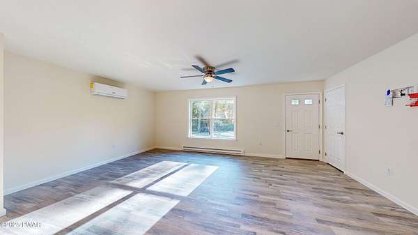 Welcome to this stunning new construction ranch-style home, perfectly situated in a cul-de-sac on over an acre of serene land in the desirable community of Pocono Mountain Woodlands Lakes. This thoughtfully designed three-bedroom, two-bath residence offers a perfect blend of modern amenities and spacious living.As you enter, you'll be greeted by a bright and airy layout that seamlessly connects the main living areas. The spacious living area, dining area, and kitchen all feature beautiful luxury vinyl plank (LVP) flooring, providing a cohesive and stylish look throughout. The primary bedroom is a true retreat, featuring ample space and a luxurious walk-in closet. The adjoining primary bath is designed for comfort and convenience, boasting double sinks, a linen closet, and a stylish stand-up shower. Both additional bedrooms are generously sized, each equipped with large closets to accommodate your storage needs. The second bathroom is equally impressive, offering a chic design along with its own linen closet. The heart of the home is the gorgeous kitchen, a cook's dream that showcases elegant quartz countertops on the island, soft-close cabinetry, and sleek stainless-steel appliances. This space is perfect for entertaining or enjoying family meals, seamlessly flowing into the dining area.Convenience continues with a dedicated laundry area/mudroom that provides additional storage options. The full attic, complete with plywood flooring, offers even more room for storage. Downstairs, the full basement features superior walls standing at 8 feet high and includes Bilco walk-up doors, offering endless potential for additional living space or recreational use. This charming ranch home combines modern luxury with practical design in the idyllic Pocono Mountain Woodlands Lakes community, making it the perfect place to call home!