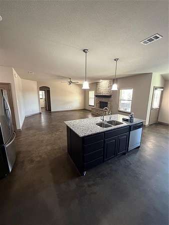Welcome to 108 La Arroya Drive! This charming four-bedroom, two-bathroom home with an office features an expansive living area of 2,422 square feet on 1.67 acres. The property is surrounded by beautiful trees, a newly installed pipe fence, and an extended concrete slab off the back covered porch. Additionally, the entire home is equipped with a water filtration system and a mini-split HVAC system in the garage, providing ample space for comfortable entertainment. The house boasts nine-foot ceilings throughout and stained concrete and LVP floors. The sellers are highly motivated and welcome all offers. The property also comes with private lake access and is 5 minutes away from Peaster schools!