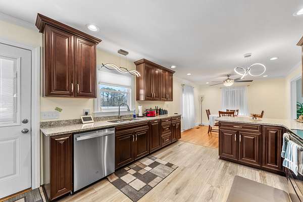 WELCOME TO YOUR PRIVATE NORTH COLUMBIA RETREAT! Renovated brick with 5 manicured private acres and 2 large outbuildings. Home has undergone a major renovation w/paint, flooring, pex plumbing, roofing, modernized kitchen w/luxury appliances & updated baths & cabinetry in 2020. Main level and basement level square footage equals 3686 sq. ft. with the entirety being heated and cooled. Custom mantles around fireplaces, hardwood flooring, custom trim work, carefully constructed built-ins, storage, large viewing windows & so much more to be seen & felt to appreciate. Heating and cooling are both electric HVAC, also propane operated fireplaces are in both living room and rec room. Laundry room on main level. There is a concrete enclosed lower-level storm shelter under the front porch area accessed in basement. The exterior grounds are private and park-like with mature landscaping, custom stonework, established trees, custom concrete driving areas, paved driveway and 2 well-appointed outbuildings of a large size that are seldom seen. Rear acreage is entirely perimeter fenced w/ high grade woven wire and there is also a deer proof garden area to right rear. The first building is 30x40 w/ full insulation & a 20' overhang. Building is fully wired for electric & has RV hookup w/ hydrant connection and parking pad. The second building is also 30x40 with a 14' overhang, 12' sidewalls and vapor barrier wrapped interior. Both buildings are concrete floored. ABSOLUTELY NOTHING ELSE LIKE THIS AVAILABLE!