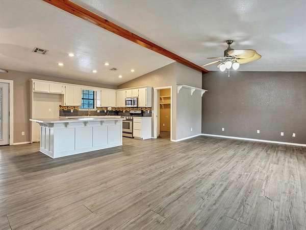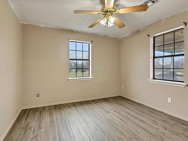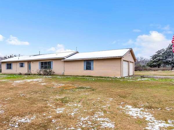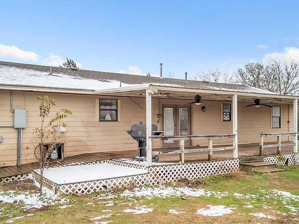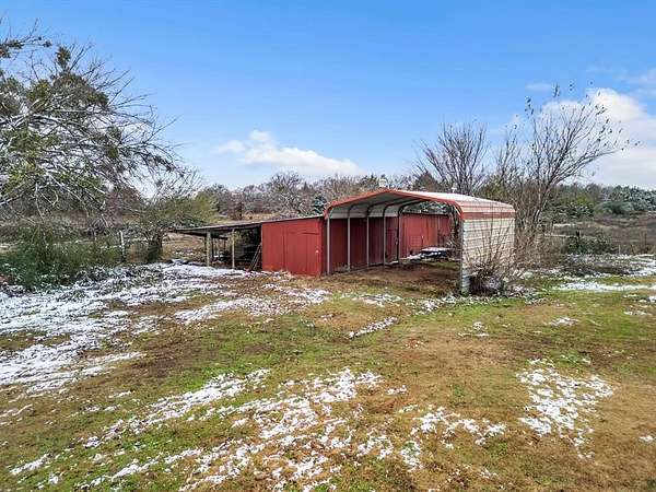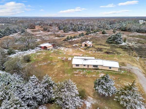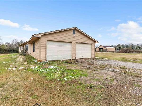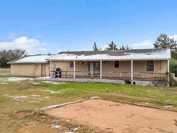 Priced for value: 2-bedroom modular home (Stratford Homes) on 13+ acres of fenced and cross-fenced pastureland. This property offers exceptional land opportunity with convenient town access, ideal for buyers seeking acreage with livestock potential. The barn features water and electricity connections, supporting various agricultural operations. The residence includes vaulted ceilings, kitchen with center island, and primary suite with walk-in closet and whirlpool tub. In addition to the attached 2-car garage and above mentioned barn, other improvements include a large covered carport, lean-to storage structure, in-ground storm shelter, and a private gated entrance. Property being sold in as-is condition. Perfect for your homestead, equestrian use, cattle, or other farming pursuits. Cash and conventional financing only. Not a good candidate for VA, USDA, or FHA.