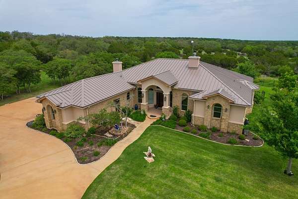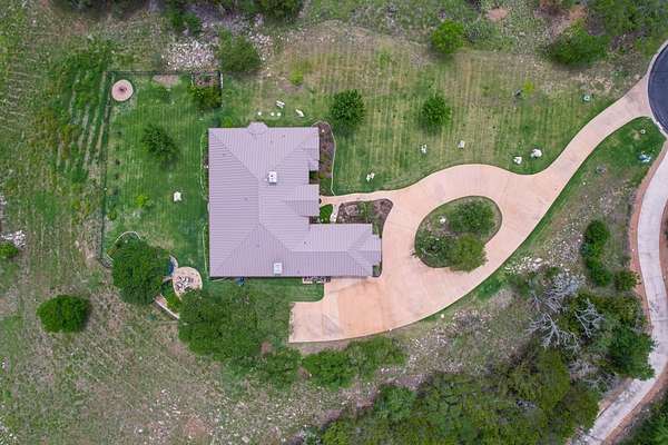Welcome to 108 Oak Bend in Eagle's Nest - just outside Burnet, Texas! Nestled on over 2 acres of picturesque land in a quiet cul-de-sac within a gated community, this stunning 4-bedroom, 3-bathroom home seamlessly blends comfort and luxury. Enjoy breathtaking panoramic Hill Country views from your doorstep and take in the tranquility that surrounds you. Just 10 minutes from downtown Burnet, this home offers both privacy and convenience. Step inside to find a thoughtfully designed floor plan with 12-14 foot ceilings throughout. The formal living and dining areas provide the perfect space for entertaining, while the two passthrough wood-burning fireplaces create a cozy atmosphere. The gourmet kitchen, complete with granite countertops, solid oak custom cabinets, and built-ins, is ideal for cooking and hosting guests. The kitchen opens into a charming breakfast nook and spacious family room, making it a perfect gathering spot. Large windows throughout the home showcase the stunning views, while the split floor plan offers privacy for the master suite and additional bedrooms. Outdoors, you'll find a meticulously landscaped yard, a cowboy swimming pool, and multiple sitting areas--perfect for enjoying the scenic surroundings. The expansive back porch offers ample space to relax and unwind in peace. Additional features include a 2-car attached garage, circular driveway and plenty of room for both indoor and outdoor living. Don't miss out on the opportunity to own this exceptional property!
