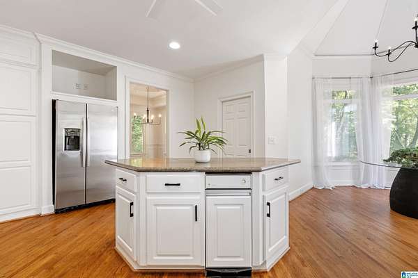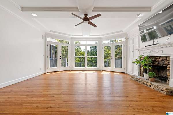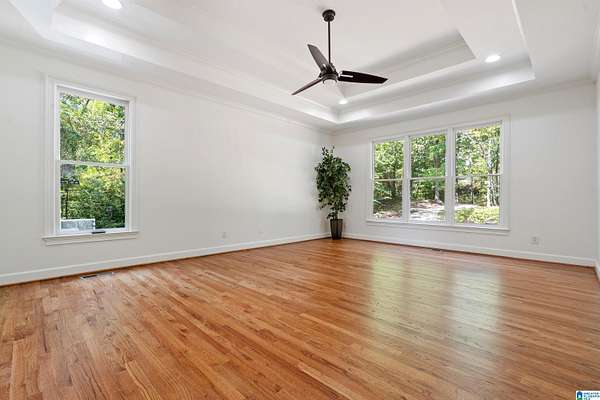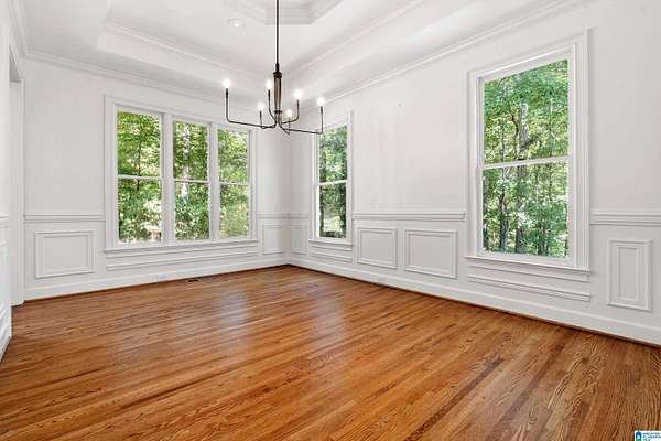 Discover the unique opportunity to own a stunning home on nearly 6 acres of private land in Helena - A RARE find! This beautiful property offers tranquility and space just minutes from Helena's excellent schools, shopping, and dining. The main floor is filled with natural light pouring through floor to ceiling windows, accentuating the gorgeous hardwood floors. You'll enjoy a formal dining room, a spacious living area, an additional living space perfect for entertaining or relaxing, a modern kitchen with a breakfast nook, a powder room, and the primary bedroom--all centrally located on the main level. Upstairs features three large bedrooms and two bathrooms, providing plenty of space for family and guests. If you need even more room, the daylight basement is ready for your customization. Venture outside to discover an expansive backyard with the soothing Cahaba streams along the border. Full basement waiting to be finished. Recent updates include new roof and 2 year old HVAC.