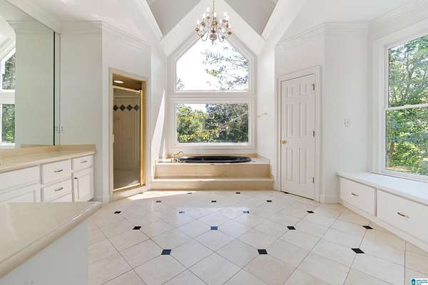 - Bay Window, French Doors, Garden Tub, Linen Closet, Recess Lighting, Separate Shower, Shared Bath, Sitting Area in Master, Tub/Shower Combo, Walk-In Closets