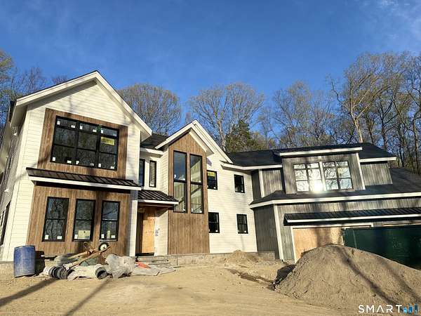 108 Old Farm Road is a stunning new construction currently underway in one of Weston's most desirable settings. This five-bedroom, 5.5-bath home offers 4,568 square feet above grade plus a 1,400 square foot finished heated lower level with home theater, totaling nearly 6,000 square feet of exceptional living space. The main level features soaring two-story ceilings, a formal dining room, home office, first-floor guest bedroom with full bath, custom kitchen cabinetry, butler's pantry, and a covered rear patio ideal for entertaining. A mudroom with custom built-ins connects to an oversized three-car garage sized to accommodate a lift. The second floor delivers a luxurious primary suite with dual walk-in closets, three additional en-suite bedrooms, a family room, and a dedicated laundry room. Spray foam insulation throughout ensures superior energy efficiency and comfort. Gas fireplace and custom millwork complete this offering. Top-rated Weston schools. Minutes to Westport, the Merritt Parkway, and Metro-North. Select finishes still available for personalization. Active construction site. Home set to be completed in July 2026.