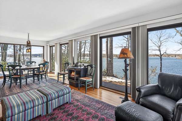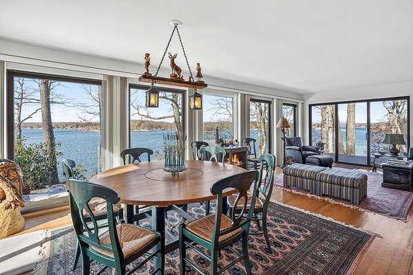 A rare opportunity to invest in your own private lake sanctuary w/2.19 acres, 1000' of waterfront, & views of the Blue Ridge Mountains. Open floor plan w/unobstructed panoramic lake views, floor to ceiling windows, & no railings on the wrap around deck. The perfect size home w/3 bedrooms, 3 full baths, & 2 car garage. Main level primary suite w/primary bath featuring a turret style that offers an architectural & unique space. Lower level has a fun entertaining Pub w/bar, gas stove & pool table. Soak up the scenery w/several built in nature trails throughout the property. Covered boathouse & paved driveway. Short term rentals are allowed! This lake home has been on the SML Charity Home Tour. New roof & deck painted approx 1 year ago. 2 heat pumps & 2 hot water heaters. Great location! New water treatment system has been installed by L D Ellis in February 2026. 3 bedroom septic permit under documents. Septic tank has been pumped by L D Ellis in February 2026. Steam shower in primary bath is sold as-is. AEP dock inspection has been completed and dock is fine. A copy of the dock status is under documents. Dock is an Existing Non-conforming dock built before Shoreline Management. 2 heat pumps & 2 hot water heaters. Terrific subdivision amenities that include, swimming pool, pickelball court and boat ramp for one low price of $550.00 per year. Sold partially furnished. The lights over the dining area table, kitchen, hallway and light over the pool table will be replaced. Boats in the glass cases do not convey. 2001 Boston Whaler boat for sell separately for $15,000.00