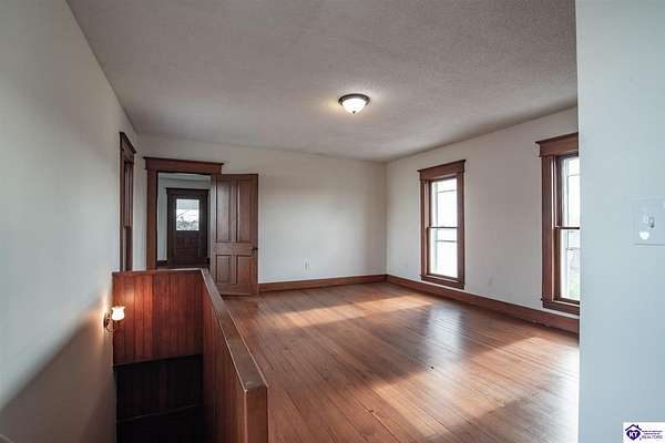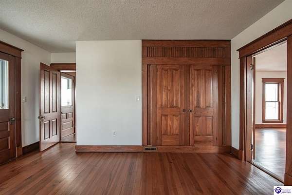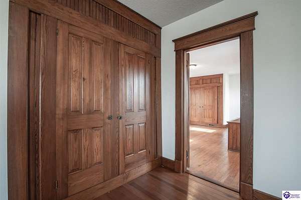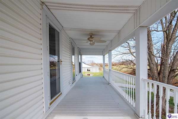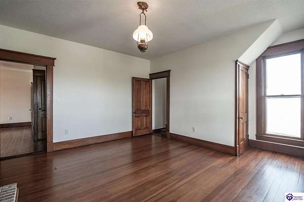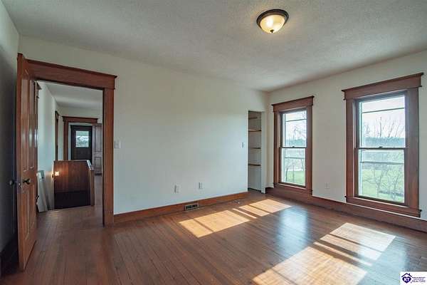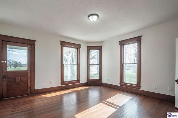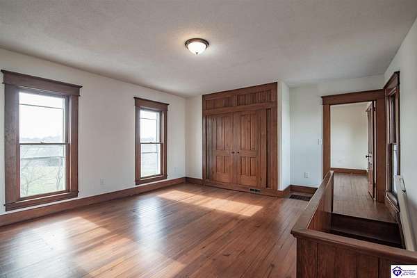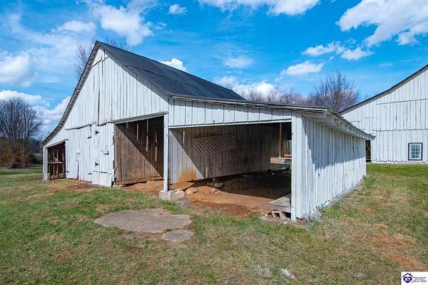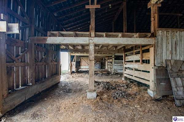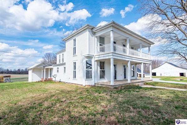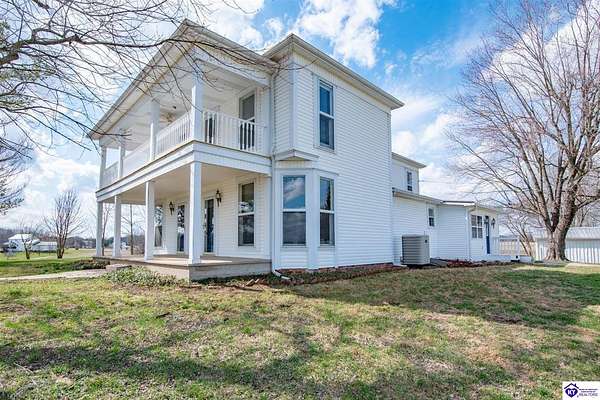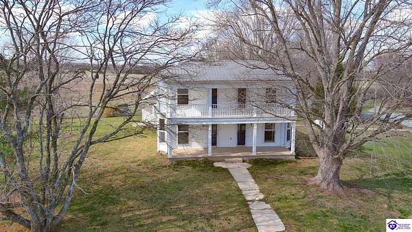 Step back in time with this magnificent Colonial home, built in 1887, where history and modern comfort intertwine on over five sprawling acres of Kentucky countryside. From the moment you approach the covered two-story front porch, you'll fall in love with the history within these walls. Inside, hand-crafted millwork, tall ceilings, and large windows adorned with intricate wood trim create an atmosphere of timeless elegance. Some windows still feature the original wavy glass, a charming reminder of the home's nineteenth-century origins. Gorgeous hardwood flooring flows throughout most of the residence, complemented by authentic period doorknobs that add delightful character to every room. The main level welcomes you with a picturesque primary bedroom featuring a beautifully renovated bathroom shower. A second bedroom on the main level boasts a cozy gas log fireplace, perfect for chilly evenings. The generous sunroom bathes in natural light, offering a tranquil retreat any time of day. The kitchen blends old-world charm with modern convenience, showcasing granite countertops and updated appliances. Two separate staircases lead to the second level, where four additional bedrooms provide flexibility for family living, guest quarters, or bonus gathering spaces. This home has been lovingly maintained and very well insulated to todays standards. Outside, the magic continues. A large pond creates a serene backdrop, while multiple barns stand ready for livestock, hobbies, or storage. A detached garage and covered patio area with a built-in shed round out this remarkable property. Homes like this simply aren't built anymore. Schedule your private tour today and discover the rare blend of heritage and heart waiting for you.