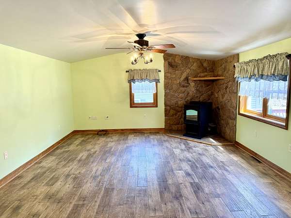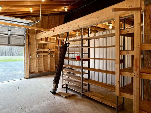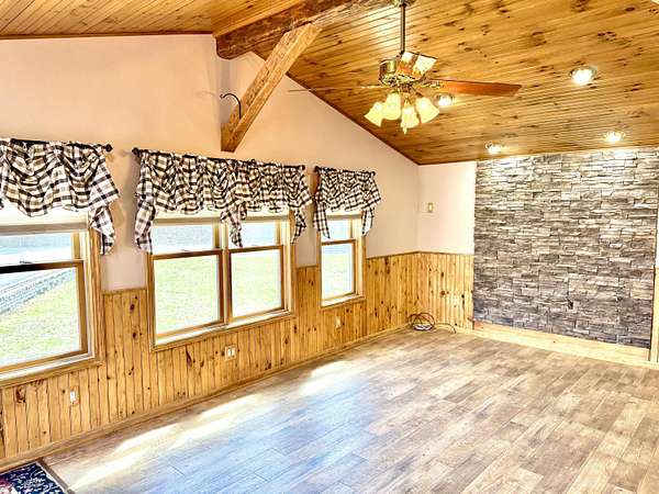 A garage like this changes everything. With over 2,000 sq ft of space for storage, hobbies, or even a home-based business--including a heated 28x40 main bay powered by a pellet stove--this is the kind of setup that's hard to find and even harder to recreate at today's costs. Step inside and you're immediately welcomed by a warm, inviting bonus room featuring vaulted tongue-and-groove ceilings, exposed wood beams, and detailed woodwork throughout. From there, the home opens into the main living area, where a pellet stove adds both comfort and efficiency. The layout flows into a custom kitchen designed for both everyday living and entertaining, complete with wood cabinetry, stone countertops, recessed lighting, and a large eat-at bar with a custom arch detail. Just off the kitchen, you'll find a functional pantry, a laundry area with continued custom cabinetry, and direct access to a 12x20 screened-in porch--perfect for relaxing while enjoying the private setting. The primary suite is well-appointed with a walk-in closet and a private full bath featuring a double vanity. A second bedroom with solid wood doors, wood trim, and a barn door adds character, along with a second full bathroom to complete the home. Set on a corner lot that still maintains a private, tucked-away feel, the property also features a large paved driveway with plenty of parking. With over 1,900 sq ft of living space and a truly standout garage, 108 Pepper Hill Road offers a rare combination of comfort, function, and flexibility.