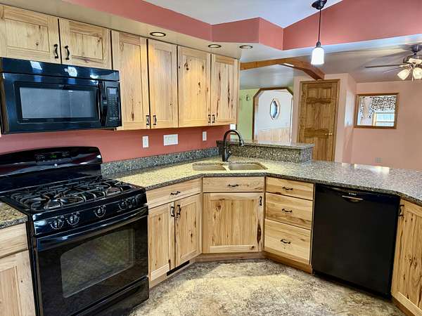 - Beamed Ceilings, Ceiling Fan(s), Double Vanity, Natural Woodwork, Pantry, Recessed Lighting, Stone Counters, Vaulted Ceiling(s), Walk-In Closet(s)