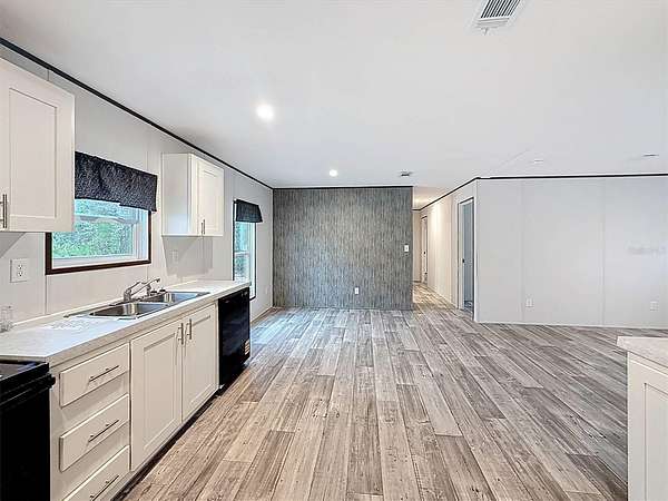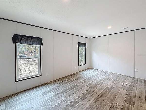 This brand new 4/2 manufactured home features 1,560 sq ft of living space and is located on 2.2 acre lot, in a quiet setting, just off the paved road. The home offers a split floorplan for comfort and convenience, with vinyl flooring throughout. The kitchen boasts a bright, modern design with white cabinetry, black appliances, and abundant storage. Each of the four spacious bedrooms includes ample closet space, including most with walk-in closets. EVERYTHING IS BRAND NEW- home, roof, central AC, septic system, well, appliances; you name it! This one is truly a must see, at an amazing price!