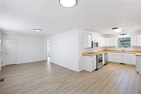 The quaint kitchen is a true highlight -- featuring new appliances, butcher block countertops, and charming touches that make it feel like home the moment you walk in.
