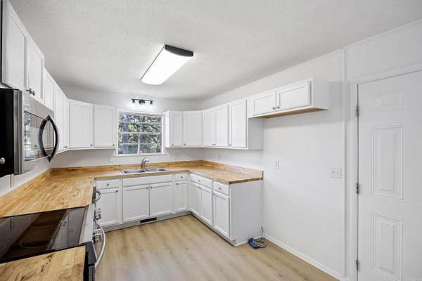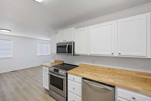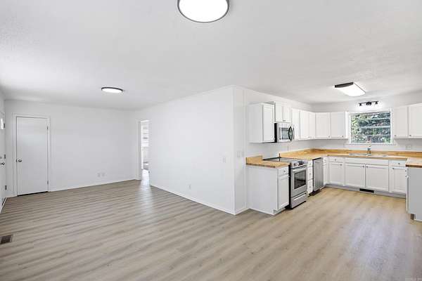Welcome to this adorable 3-bed, 1-bath home, tucked away for peaceful living while still being minutes from the main road for easy access. This home has been completely renovated from top to bottom, offering the perfect blend of modern updates and cozy country charm. Step inside to find brand-new flooring throughout, including plush carpet and luxury vinyl plank wood for a warm, inviting feel. Fresh paint and new flush ceiling lights brighten every room, creating a clean and welcoming atmosphere. The quaint kitchen is a true highlight -- featuring new appliances, butcher block countertops, and charming touches that make it feel like home the moment you walk in. Enjoy a large yard surrounded by mature trees, offering privacy and plenty of space for outdoor living, gardening, or entertaining. This move-in ready home has everything you need. Don't miss your chance to own this cozy countryside retreat!