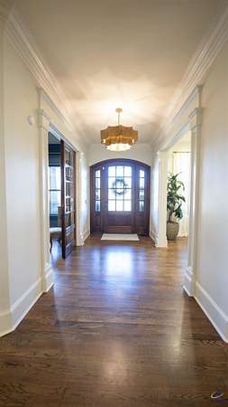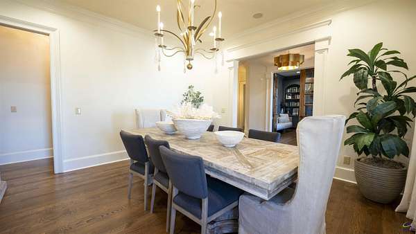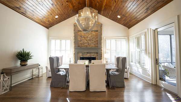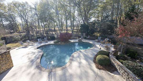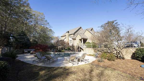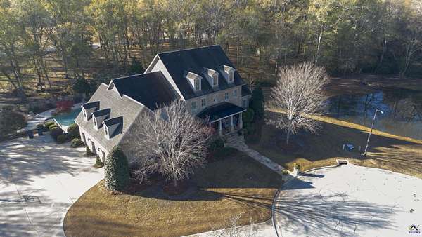 This stunning 6-bedroom, 4.5-bath, 7,551 sq ft all-brick home sits on a beautiful 3-acre property and offers timeless craftsmanship with expansive living and entertaining spaces. The main level features a large chef's kitchen with granite countertops, tile backsplash, and stainless steel appliances, opening to a bright breakfast area with a stone fireplace. Elegant living areas include a formal dining room, private office, and a spacious den with coffered ceiling, all complemented by wood flooring throughout the home. Enjoy outdoor living from the screened porch on the main level. The second floor includes an additional den and bonus room, offering flexible living options. The fully finished walk-out basement is ideal for entertaining, featuring a bedroom, full bathroom, exercise room, kitchenette, and a large open entertaining area with direct access to the pool. Outdoors, the property offers a private retreat with an inground pool and a covered basement-level porch that walks out to the pool area. A 3-car garage provides ample parking and storage. This impressive home blends luxury, space, and functionality on a scenic 3-acre setting.