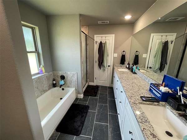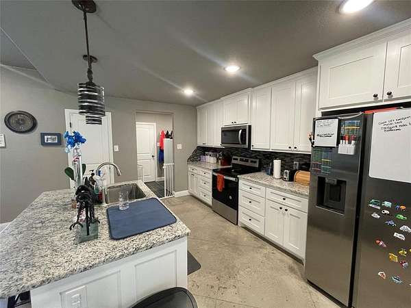 Inside, you’ll find beautiful granite countertops, a spacious primary suite with a relaxing soaking tub and separate shower, and durable stained concrete floors that are both stylish and easy to maintain, as well as, carpet and tile. The open layout makes the home feel roomy and welcoming—perfect for relaxing or entertaining. Weatherford ISD! No HOA!