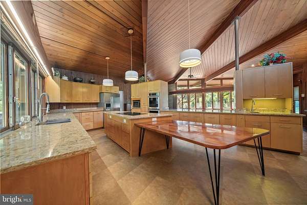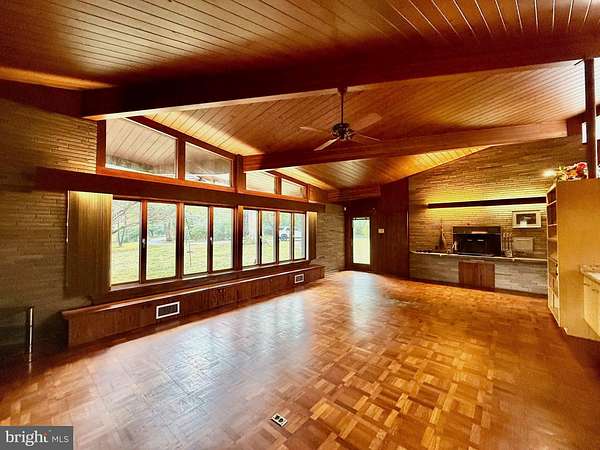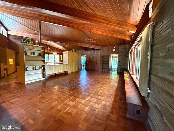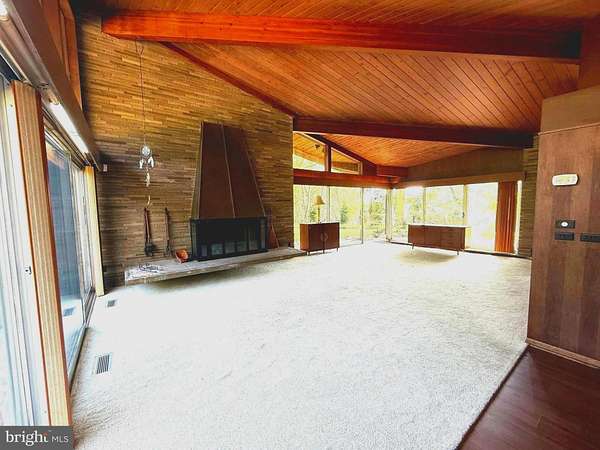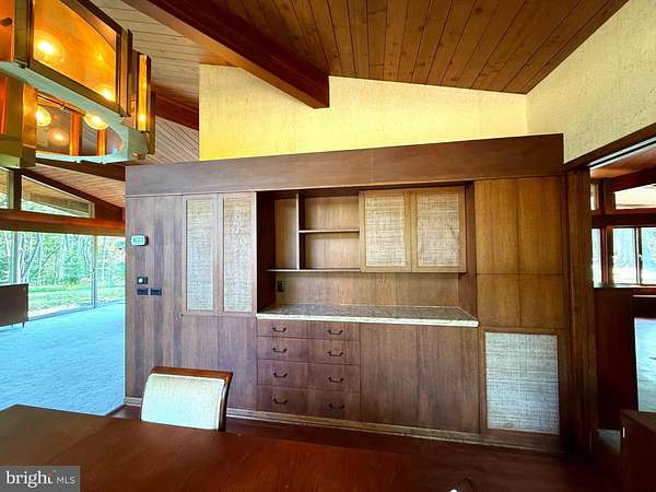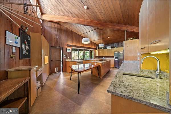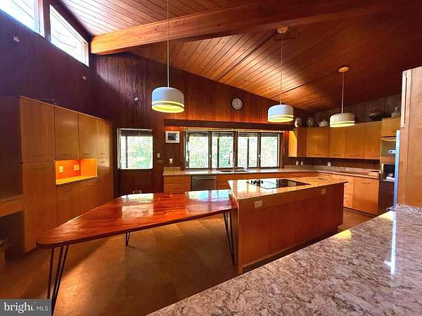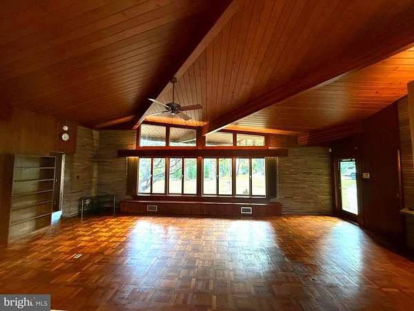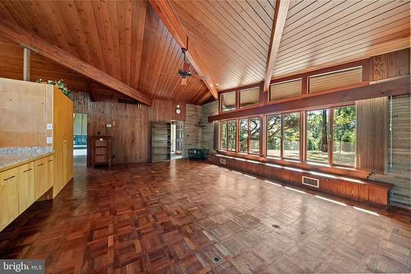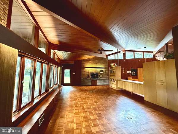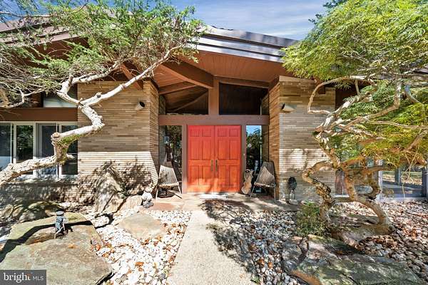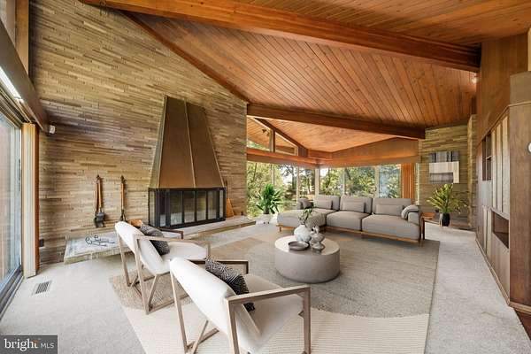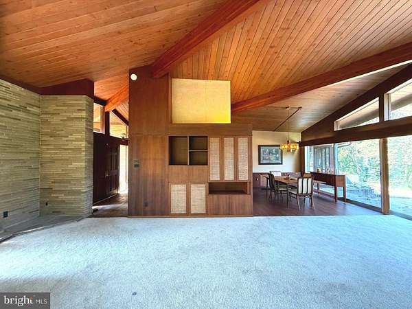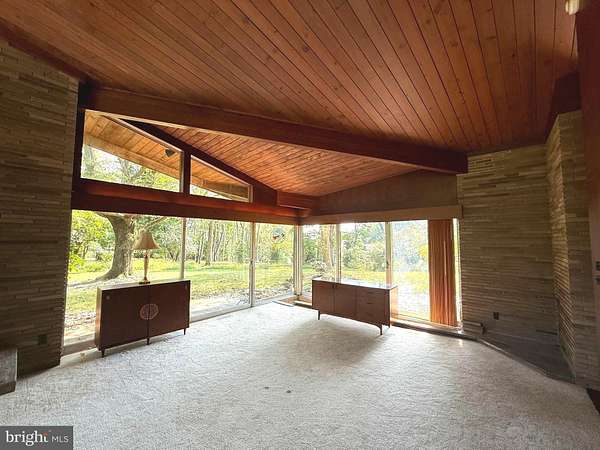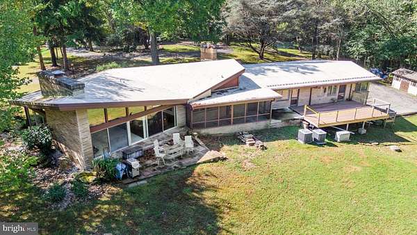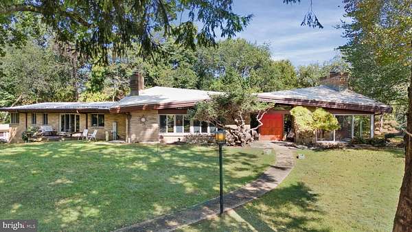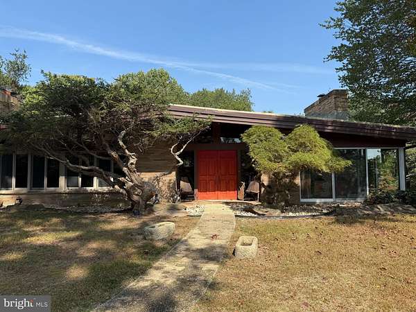Frank Lloyd Wright-inspired custom built home, this striking mid-century modern ranch sits on 4 private acres along a rarely available lane in the prestigious 19807 zip code. Offering 4 bedrooms 3.1 baths, and over 3600 square feet of thoughtfully designed living space, this residence blends architectural artistry with comfort. The formal living spaces showcase three walls of glass, a dramatic suspended wood-burning fireplace with decorative copper vent, soaring 15' beamed all wood ceilings, and rich brick accent walls. The formal dining room includes custom built-in cabinets and drawers, perfect for storage and display. The gourmet kitchen is designed for both function and gathering, featuring a center island with Jenn-Air cooktop, built-in dining area, Kitchen Aid double ovens & dishwasher, super wet bar and desk nook. The extensive custom cabinetry offers an abundance of storage options and convenience that is unparalleled. A remarkable 17' divider with pass through connects the kitchen seamlessly to the expansive family room, where a brick wall with elevated wood stove, wormwood accents and volume ceilings create a warm and inviting atmosphere. Privately tucked away, the vast primary suite offers a dressing area, double closets, full bath and direct access to the rear deck. Bedroom #2 includes a double sliding glass door to its own deck, abundant built-ins, three closets , and a private bath with walk-in shower. The two additional bedrooms share a hall bath. Additional conveniences include a laundry room with a sink, built-ins and outside access as well a stairwell to the finished lower level that expands the home's flexible living space. This lower area offers convenient access to the utilities and the huge 37' x 30' two car garage with service door and HVAC, perfect for the car enthusiast. Outdoor deck, screen porch and stone patio offer views of wide open land with a backdrop of wooded surroundings. Some major recent system upgrades include a white rolled rubber roof, Andersen thermopane windows & doors, two Carrier high efficiency propane HVAC systems with multiple zone control, Navien propane on demand Hot water heater, 400 amp electric service & Generac whole home generator. This stunning home boasts exceptional structural integrity, solid foundation built to last with a robust design that reflects the quality of DuPont engineering and awaits your stylish touch, making a perfect canvas for your creative vision. Priced attractively, this beauty offers a golden opportunity to elevate its charm and unlock its true potential. Logistally the Home is only 5 Minutes to Centerville, Greenville, Hockessin, local shopping and all major thoroughfares, what a hidden gem of a location. The Home is being sold to settle an Estate. The Home is being Sold in " As-Is, Where-Is" condition. Any inspection performed by the Buyer is for their information only, the Seller will make No Repairs.