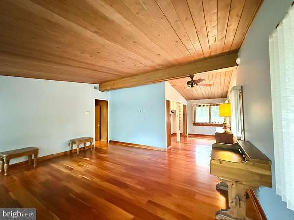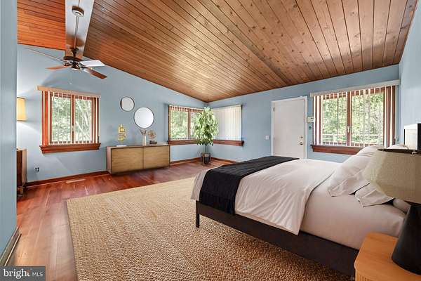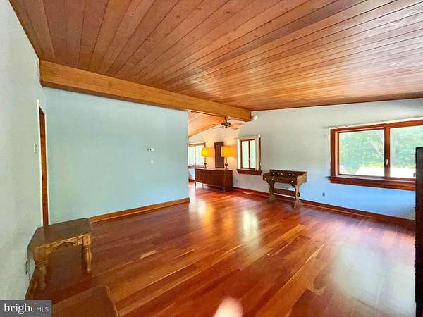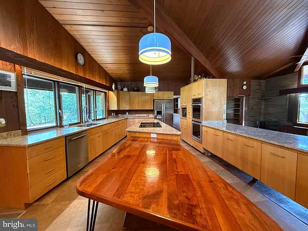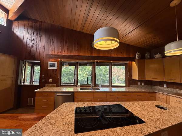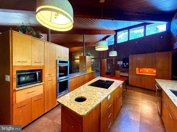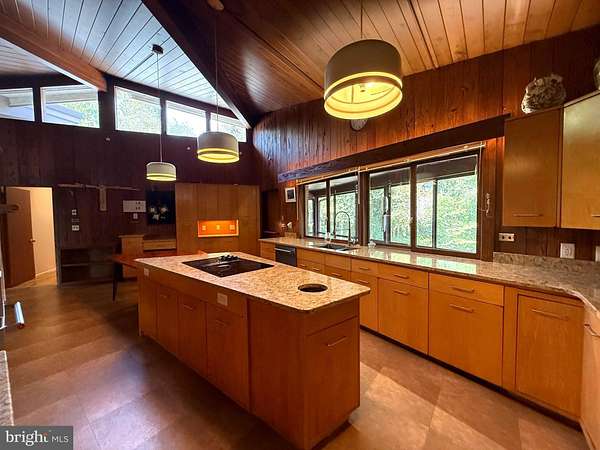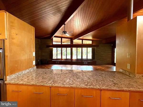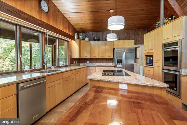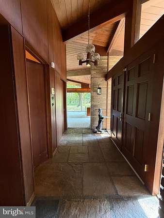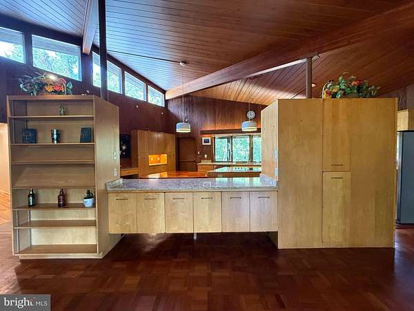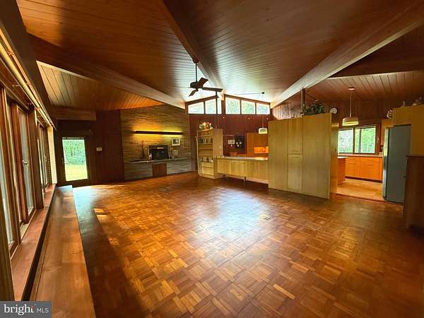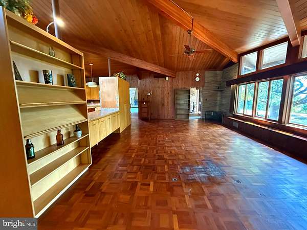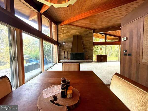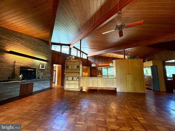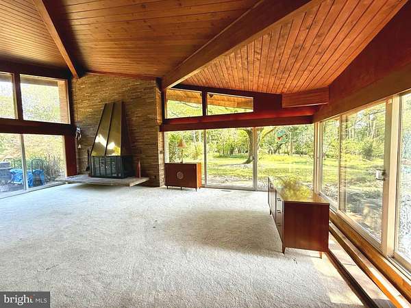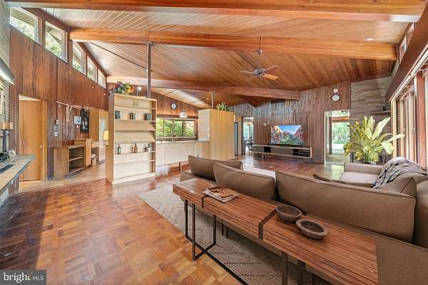 Frank Lloyd Wright-inspired custom built home, this striking mid-century modern ranch sits on 4 private acres along a rarely available lane in the prestigious 19807 zip code. Offering 4 bedrooms 3.1 baths, and over 3600 square feet of thoughtfully designed living space, this residence blends architectural artistry with comfort. The formal living spaces showcase three walls of glass, a dramatic suspended wood-burning fireplace with decorative copper vent, soaring 15' beamed all wood ceilings, and rich brick accent walls. The formal dining room includes custom built-in cabinets and drawers, perfect for storage and display. The gourmet kitchen is designed for both function and gathering, featuring a center island with Jenn-Air cooktop, built-in dining area, Kitchen Aid double ovens & dishwasher, super wet bar and desk nook. The extensive custom cabinetry offers an abundance of storage options and convenience that is unparalleled. A remarkable 17' divider with pass through connects the kitchen seamlessly to the expansive family room, where a brick wall with elevated wood stove, wormwood accents and volume ceilings create a warm and inviting atmosphere. Privately tucked away, the vast primary suite offers a dressing area, double closets, full bath and direct access to the rear deck. Bedroom #2 includes a double sliding glass door to its own deck, abundant built-ins, three closets , and a private bath with walk-in shower. The two additional bedrooms share a hall bath. Additional conveniences include a laundry room with a sink, built-ins and outside access as well a stairwell to the finished lower level that expands the home's flexible living space. This lower area offers convenient access to the utilities and the huge 37' x 30' two car garage with service door and HVAC, perfect for the car enthusiast. Outdoor deck, screen porch and stone patio offer views of wide open land with a backdrop of wooded surroundings. Some major recent system upgrades include a white rolled rubber roof, Andersen thermopane windows & doors, two Carrier high efficiency propane HVAC systems with multiple zone control, Navien propane on demand Hot water heater, 400 amp electric service & Generac whole home generator. This stunning home boasts exceptional structural integrity, solid foundation built to last with a robust design that reflects the quality of DuPont engineering and awaits your stylish touch, making a perfect canvas for your creative vision. Priced attractively, this beauty offers a golden opportunity to elevate its charm and unlock its true potential. Logistally the Home is only 5 Minutes to Centerville, Greenville, Hockessin, local shopping and all major thoroughfares, what a hidden gem of a location. The Home is being sold to settle an Estate. The Home is being Sold in " As-Is, Where-Is" condition. Any inspection performed by the Buyer is for their information only, the Seller will make No Repairs.