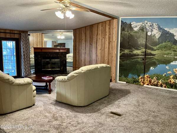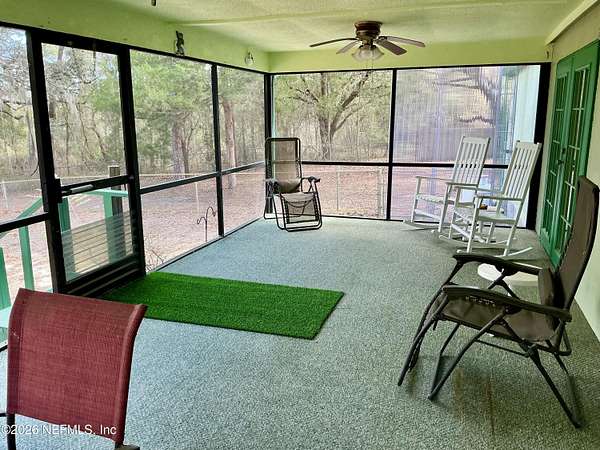 Welcome to peaceful country living in this well-maintained 3-bedroom, 2-bath home nestled on 2.3 acres (approximately). The home boasts a metal roof and offers a spacious living area of 1680 square feet, with a total of over 2500 square feet of living space. Step inside to a spacious living room that offers beautiful views of Sand Lake. Start your day with a refreshing cup of coffee on the large screened-in back porch, surrounded by nature. The primary suite features a large bathroom with a corner nook and a tiled shower. The inside utility room provides bonus space that can easily be converted into extra storage or a pantry. There's ample room for a workshop, garden, or all your recreational toys, making it an ideal choice for those who value space. The two-car garage offers covered parking with shelving for additional storage.