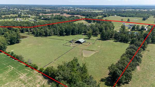 The farm is partially wooded with multiple pastures that are cross fenced with two barns, a loafing shed, and a quaint little farm house.