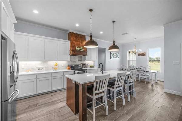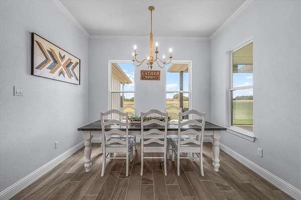 Nestled on 4 peaceful acres with sweeping pasture views, this stunning 5-bedroom, 4-bath Trinity home combines space, style, and modern functionality. With 3 separate HVAC zones and a nearly 500-ft insulated well, this home offers comfort and efficiency year-round. The 3-year-old roof and structure come with a 10-year warranty, ensuring peace of mind.
