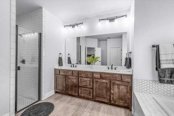 The luxurious primary suite includes a soaking tub, marble counters, a large walk-in shower, and an oversized walk-in closet! Every detail has been thoughtfully updated for comfort and elegance.