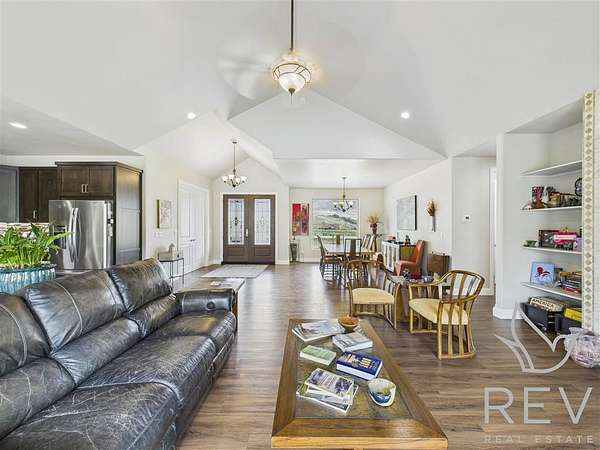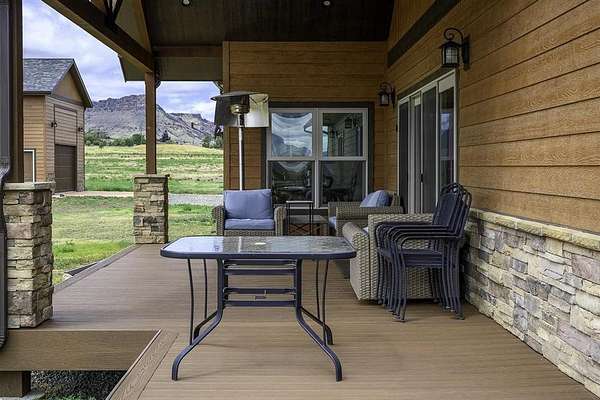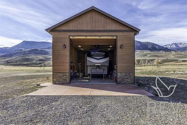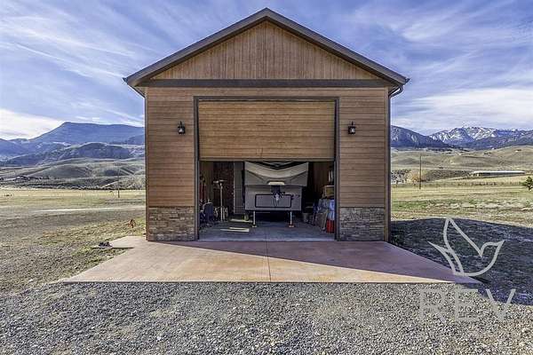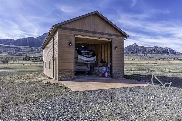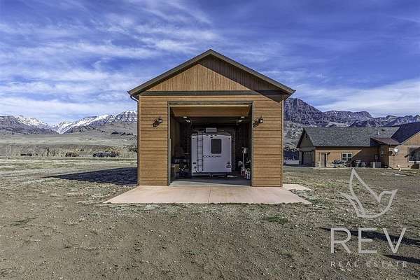 Welcome to a one-of-a-kind retreat where western beauty meets modern craftsmanship. Custom built in 2022 in Copperleaf—Wapiti Valley’s premier gated community—this home captures 360° mountain views with large picture windows and deck access from both the great room and primary suite. The open-concept design is ideal for hosting or relaxing, with handcrafted wood cabinetry, granite countertops, propane cooktop with vent hood, and built-ins throughout. Stain-resistant LVP flooring and heated tile in the primary bath make upkeep easy. Built for comfort and Wyoming durability, the home includes a tankless water heater, Trane A/C, Kohler whole-house generator, ventless propane fireplace, and oversized heated garage (26.2' x 27') with stairway to a private suite—perfect for guests or rental. The matching 24' x 50' shop has drive-through overhead doors, 16' walls, and upper storage—ideal for trucks, toys, and tools. Designed for efficiency with Diamond Kote siding, Class 3 Malarkey shingles, insulated windows, and Fiburon decking. Copperleaf offers 1.5 miles of the Shoshone River and 300+acres of open space. A rare western haven built for adventure and ease.