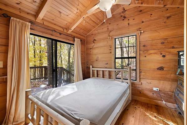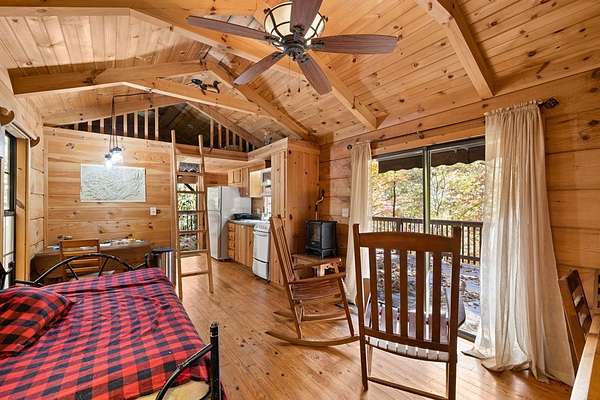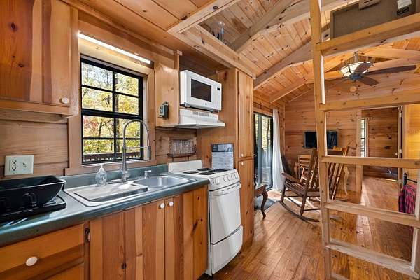 Endless possibilities await on this unique mountain retreat! Set on 2.4 acres of peaceful, private, unrestricted land, this wooded property features a rushing creek with waterfall and two charming tiny cabins. Cabin #1 is a 2006 park model with a loft, covered patio, and deck. Cabin #2 is a 12x20 one-room cabin with a pullman kitchen, two lofts, an outdoor shower, and a waterfall view, plus a Fushion 757 shed housing a composting toilet. The two cabins share a well and enjoy easy access from a state-maintained road, along with available cell service. An additional 7.24 acres--complete with roads, septic, and other improvements--may be purchased in conjunction with this property. Offered below recent appraised value. Upper cabin currently has a month-to-month tenant.