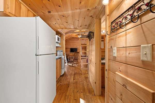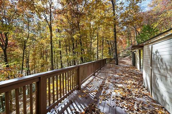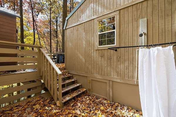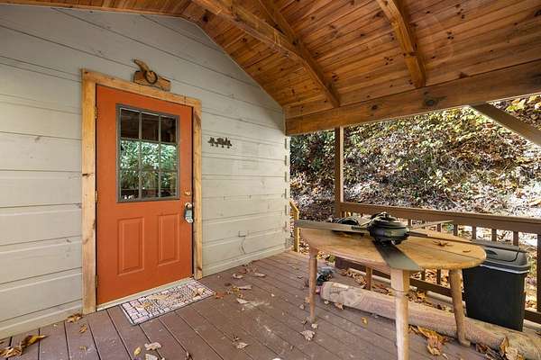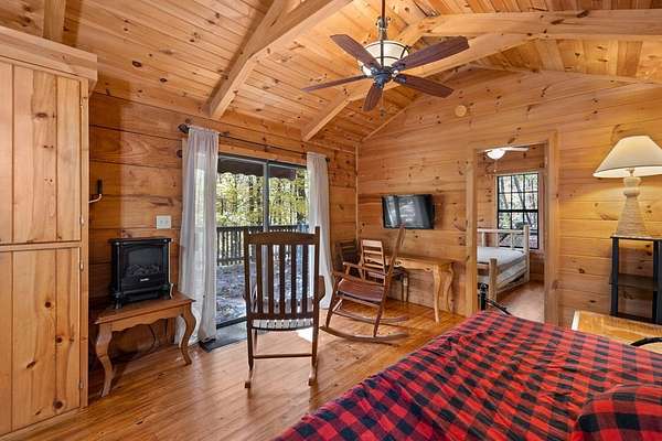 Whittier exit 72, past post office to Old Bryson City Rd. Turn on Conleys Creek drive 3.7 miles to right on Chestnut Cove. Travel 1.1 miles to right on Waterfall Hollow. Turn right just past bridge at LO pointer/green gate. Enter and head straight up the hill to the end. You will pass the small cain #2 on right, park at Cabin #1 just beyond this.
