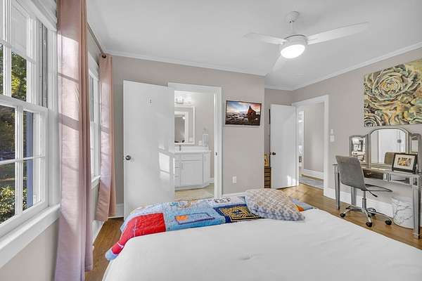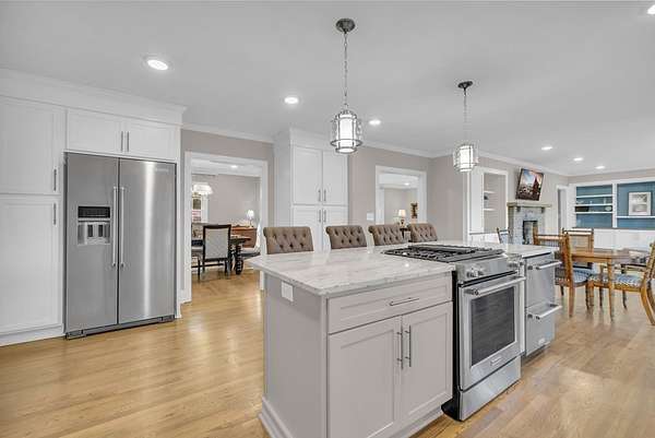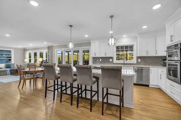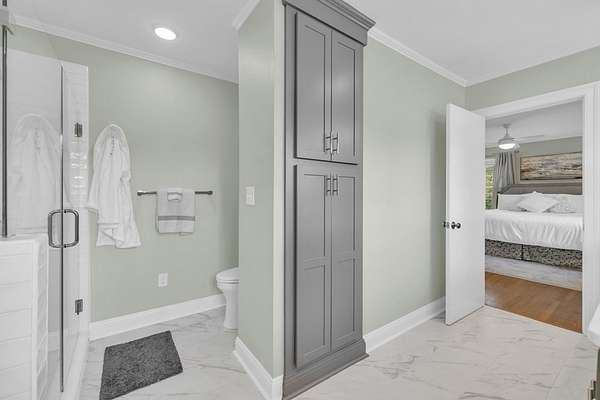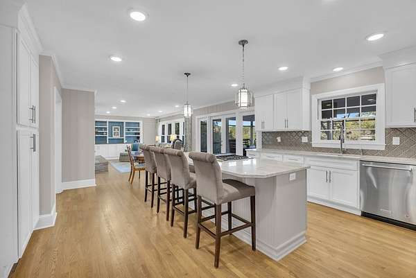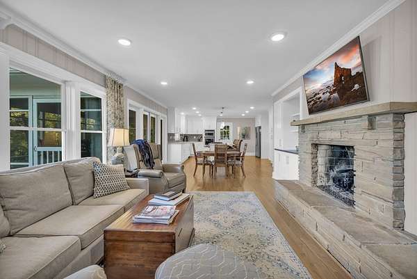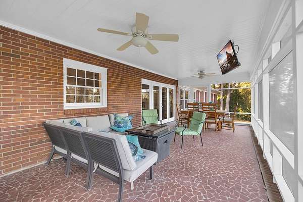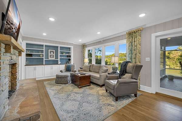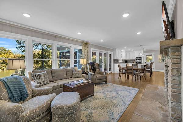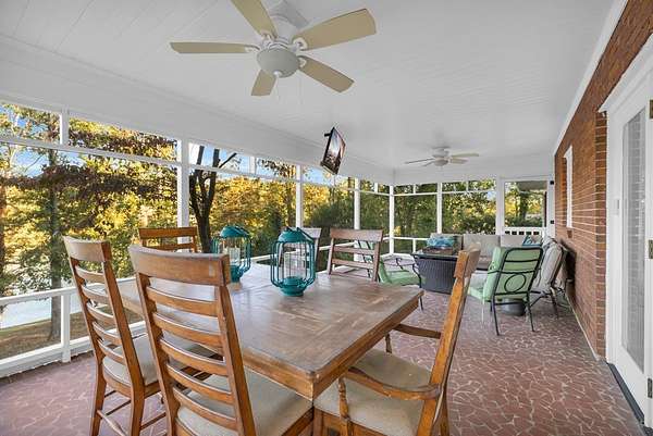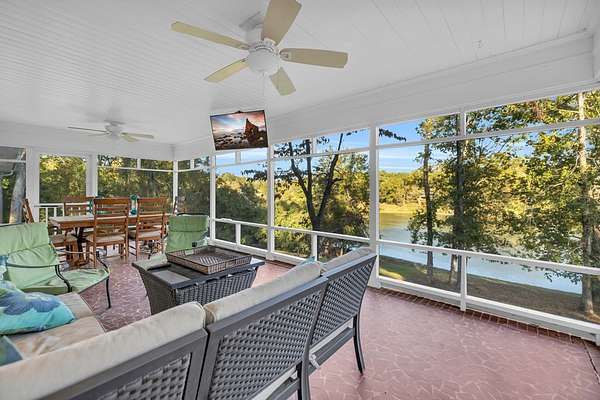 This classic brick home sits on 2.3 acres situated in the desirable Chinquapin Subdivision. The home offers 440 feet of water frontage on Chinquapin Lake and is on the OLD DUKE RATE. This property blends timeless character with thoughtful updates. Inside, the main level features refinished hardwood floors and a welcoming foyer that opens to a large front living room. A spacious formal dining room sits just off the living area, perfect for entertaining. The bright, open kitchen includes stainless steel appliances, quartz countertops, and a large center island, flowing seamlessly into a cozy family room. From there, step out onto the large, screened porch. The perfect spot to relax and enjoy the views. The main level offers three generous bedrooms, each with its own private full bath. Plus, a convenient half bath for guests. The owner's suite boasts a walk-in closet that includes washer and dryer hookups for added convenience, and an updated bathroom. The bathroom features a double vanity, separate tub, and tiled shower. Downstairs, a finished walk-out basement provides even more living space. This level includes a comfortable living room, laundry room, one bedroom and full bath, and a bonus room, offering plenty of flexibility for guests, hobbies, or a home office. From here, you'll enjoy walk-out access to the back patio overlooking the lake. The basement also features a large storage room, ideal for keeping seasonal decor, tools, or outdoor gear organized. With its generous size and accessibility, this space could easily double as a workshop area. A great spot for projects, woodworking, or the handyman of the home. Don't miss your opportunity to claim this move-in ready, updated home on the west side of Greenwood!