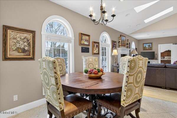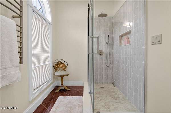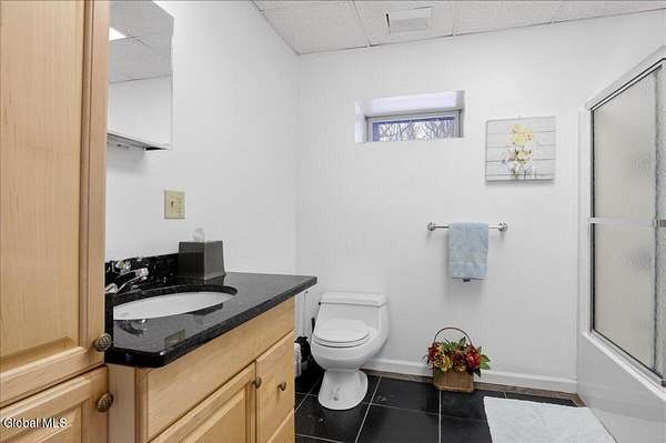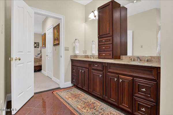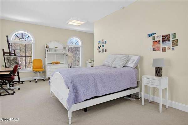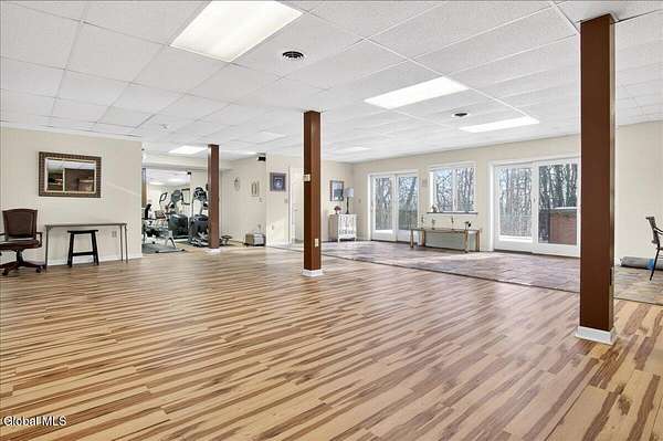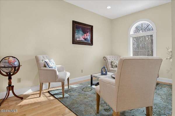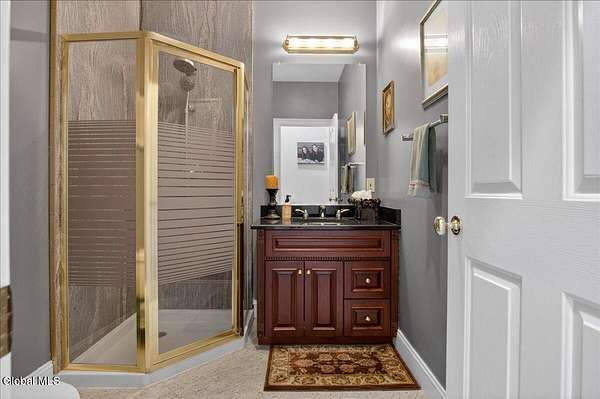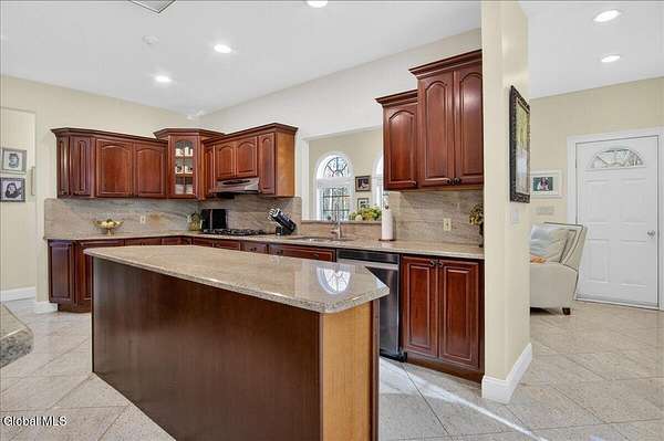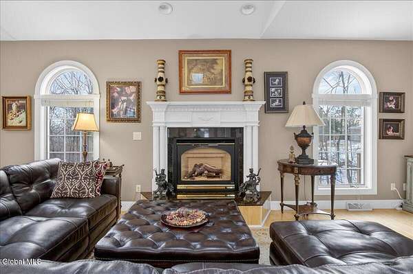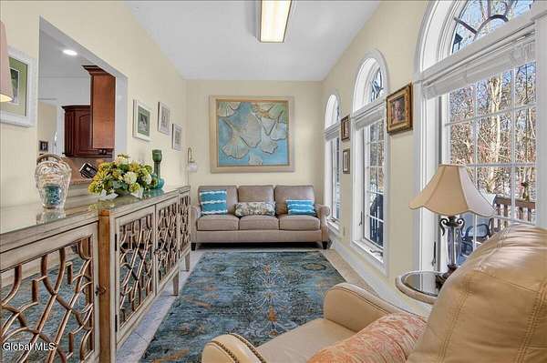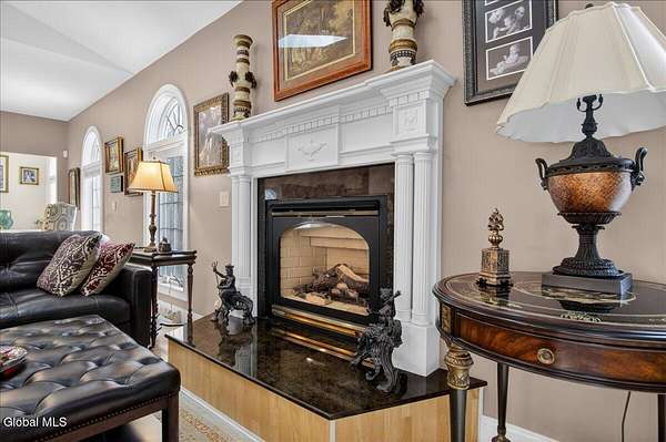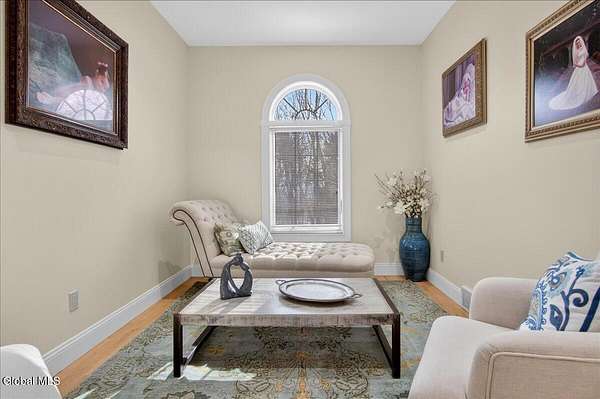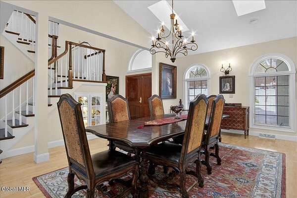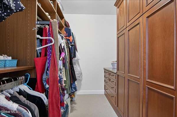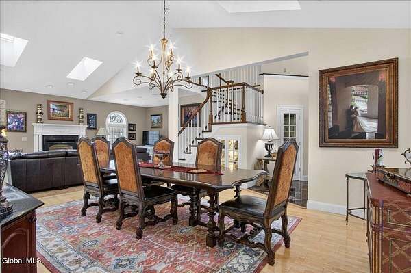 Unique and stunning custom home, quietly tucked away on picturesque Woods Lane and beautifully situated on 2.2 private acres. Double solid carved wood front doors create an impressive and welcoming entrance to this exceptional residence. The home offers gracious living spaces and outstanding flexibility, including a fully finished walk-out basement featuring a second kitchen, full bath, exercise studio, and convenient stair access to the garage-ideal for extended living, guests, or entertaining. The main level boasts a desirable first-floor primary bedroom with an updated en-suite bath, as well as an additional first-floor bedroom and full bath. The handsome kitchen features a large center island and opens seamlessly to a sun-bathed sunroom, creating a warm and inviting gathering space. Upstairs, you'll find two bedrooms connected by a Jack-and-Jill bathroom, a loft area, and an additional expansive bedroom with a full bath located over the garage-perfect for guests or a private retreat. Recent updates provide peace of mind and modern efficiency, including a new roof (2022), new furnaces and air conditioning units (2022 & 2023), a whole-house generator (2022), two tankless water heaters, and a newly renovated primary bath shower and a 3 car garage. The home is further enhanced with four outdoor security cameras installed in 2023. An awning over the newly restored side deck adds comfort and functionality to the outdoor living space. A rare offering that combines privacy, thoughtful design, and extensive upgrades-this home is truly one of a kind. **Exclude chandelier in 2nd flr bedroom.