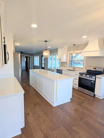 Offers great space and a flowing layout with lots of natural light. Spacious living room upon the beautiful front door entry, and a cozy family room with gas log fireplace tucked in the rear of the house. The dreamy kitchen is well appointed with a large island with quartz tops as the centerpiece, surrounded by new cabinetry, new appliances, a pantry, and an impressive stove hood. The kitchen opens to the dining which is great for supper time or entertaining. Master suite has a relaxing tiled shower, double vanity, and two closets. Separate large laundry with cabinets and granite leathered counters. Upstairs space is a 2 Bedroom and a Full Bathroom Attached 2 car garage. Detached 3 car garage. 4 Bay shed, plus RV bay. Buildings are equipped with electricity and water spickets. Paved drive. The home sits perfectly on the flat 5.6 Acres for optimal use. Being located just outside the city limits in the county is perfect and still makes for quick access to major highways and shopping.