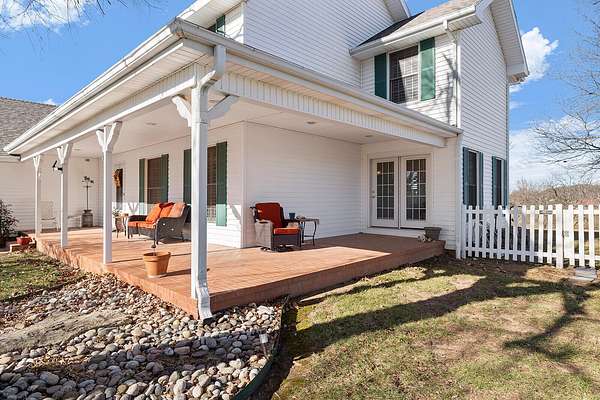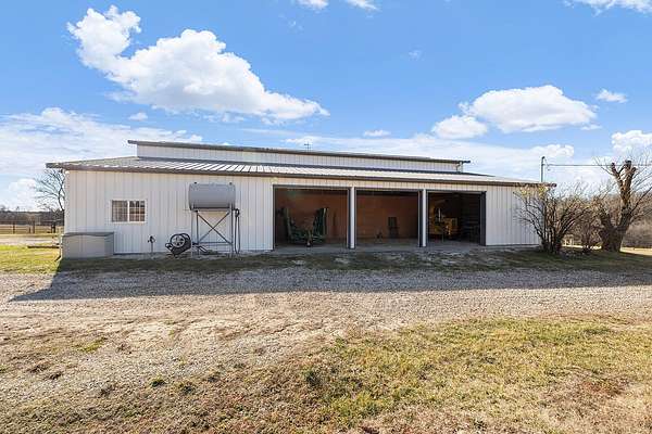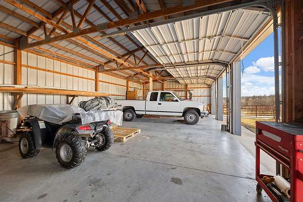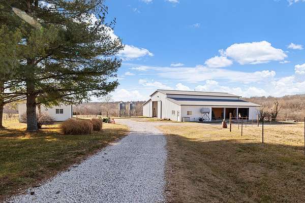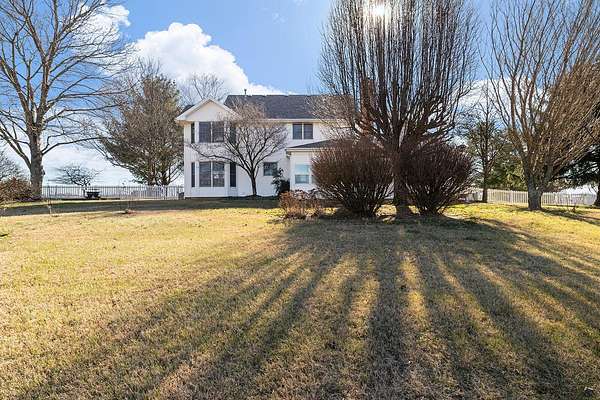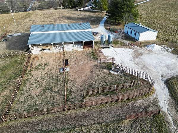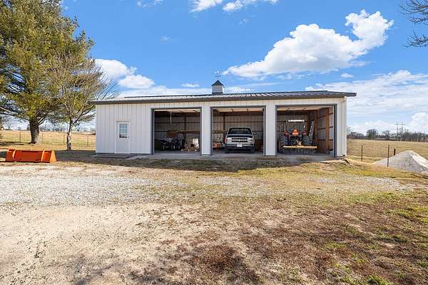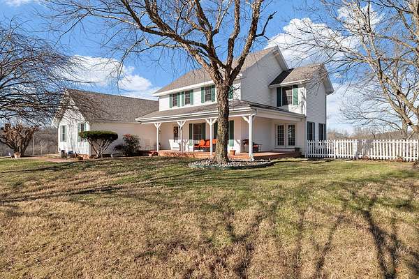 This nostalgic, well-cared-for 2,700+ sq ft home sits on a surveyed 36.5 acres just south of Ozark, offering a peaceful, private setting while still being only minutes from town. The pride of ownership glows throughout this thoughtfully designed hobby farm, from the home itself to the land and outbuildings.You'll enter the home through the oversized two-car garage into a mudroom. The main level offers flexible living spaces, including a study, dining room, breakfast nook, kitchen, living room, sunroom (12x20, not included in square footage), and a half bath. Upstairs features two bedrooms plus a primary suite. Storage is plentiful on every level. The garage includes a dog wash, and access to a small basement that houses the pressure tank, HVAC, water softener, and additional storage.Just beyond the home is a meticulously maintained drive-through Morton barn with power and water. The barn includes two 20-foot lean-tos--one for livestock shelter and handling, and one with three doors for equipment storage--along with hay storage, stalls, a tack room, and a tool room. A separate three-car garage provides space for vehicles and storage.The land is fully set up and ready to use, featuring 6 paddocks with barbed wire, electric, and pipe fencing, two automatic waterers, hydrants, an animal shelter, grain bins, and a fuel tank. From the entire layout to the smallest details like pipe corners and gate latches, this property was clearly designed as a long-term home.Bonus! Brand new roof installed Jan 2026 with 50 year shingle and 10 year labor warranty transferrable to the new owner!Acreage properties like this in the Ozark and Nixa areas are increasingly hard to find. Conveniently located just 8 minutes to Ozark and 12 minutes to the Hwy 60/65 interchange in Springfield, this property offers the perfect blend of rural living and everyday convenience.Interactive Map