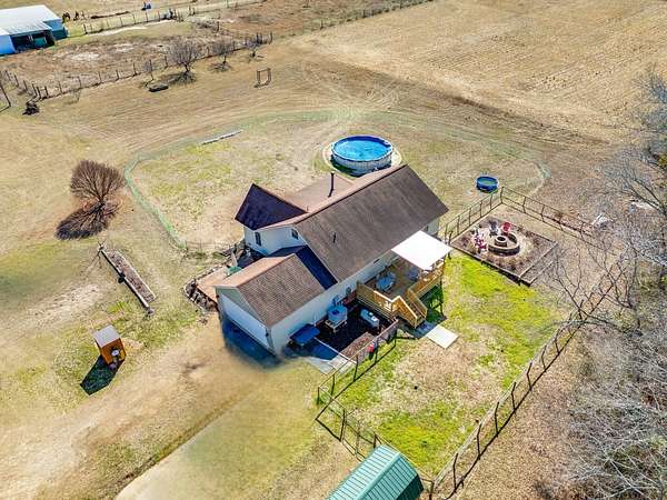 Gorgeous 73.42-acre horse farm with updated 4BR/3BA home w/equestrian facilities. The main level features an open great room with wood-burning stove, updated kitchen w/granite, stainless appliances, gas stove, pantry & new cabinets. Primary suite on the main w/walk-in shower and jetted tub. Split floor plan w/two guest rooms and a full bath. Upstairs includes office, guest bedroom, and full bath. Newer systems: Roof 2022, HVAC 2023, Tankless Water Heater 2024. Enjoy a covered front porch, a new covered back porch, grilling deck, fenced backyard with/electric fencing, 2 car garage, & a fire pit area. Equestrian Features:- Barn with eight 12*12 stalls & 16-ft center aisle- 24*24 tack room w/ a half bath & hot water- Lighted 100*200 riding arena- 35-40 acre hayfield- Two turnout sheds & multiple fenced pastures- Large workshop with garage door & covered area- Road frontage, open & wooded land, a turnkey equestrian property offering comfort, functionality, and beautiful rural views.