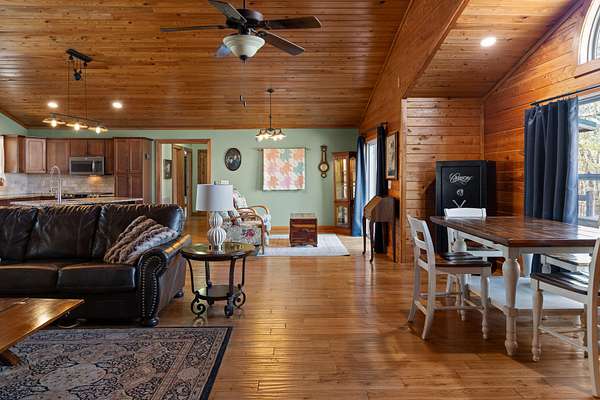 This stunning property offers nearly 6 acres of serene countryside, complete with a stocked pond for fishing and abundant wildlife. The main home boasts just under 3,200 sq. ft. of living space, featuring a spacious back deck overlooking an above-ground swimming pool, perfect for entertaining.