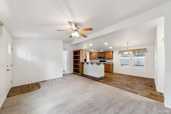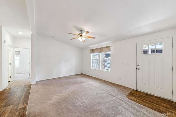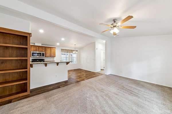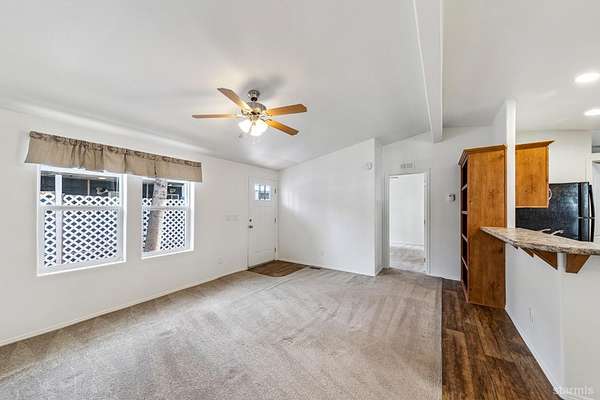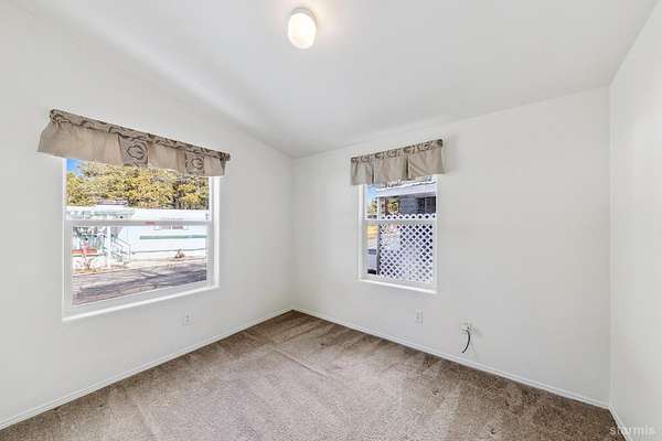 Welcome to this well-maintained newer manufactured home located in the desirable Tahoe Verde Mobile Home Park. Offering approximately 1,104 square feet of thoughtfully designed living space, this home features a bright and open-concept layout ideal for comfortable everyday living and easy entertaining.The spacious main living area flows seamlessly into the kitchen and dining space, highlighted by warm cabinetry, ample counter space, and abundant natural light. The generous primary suite is privately situated and includes two closets, one being a walk-in, along with an en-suite bath featuring dual sinks and a step-in shower.On the opposite side of the home, you'll find two additional bedrooms and a full guest bathroom, providing excellent separation and flexibility for guests, family, or a home office.Additional highlights include a covered carport, dedicated laundry area, and low-maintenance surroundings. Fresh interior paint, a new microwave and new wall furnace were just installed. Residents of Tahoe Verde enjoy access to community amenities such as a clubhouse, pool, sauna, recreation center, and convenient snow removal on main roads.Whether you're seeking a full-time residence or a Tahoe retreat, this inviting home offers comfort, convenience, and great value in a centrally located community.