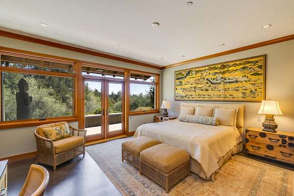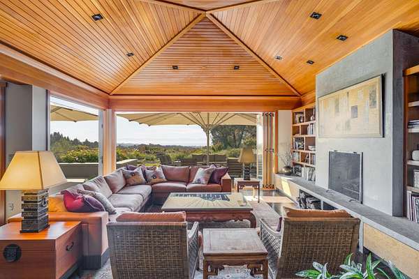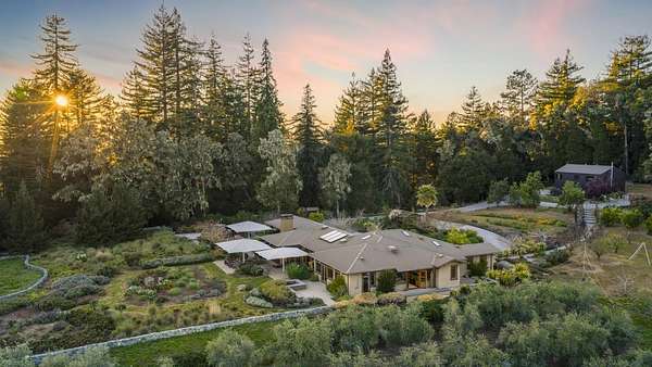 Behind a private gated entrance, this hilltop residence spans over 9.2 acres parcel with south facing ocean views stretching across Monterey Bay toward Moss Landing & Pacific Grove, creating a setting defined by privacy, open space, and natural beauty. Built in 2012, the single level main residence offers 3,314 sq ft with 3 bedrooms & 4 baths. Walls of glass open to south facing ocean view outdoor living spaces anchored by a gourmet kitchen w/8 burner Viking range, large island and professional grade appliances. Additional features include radiant heated floors, wood burning fireplace, metal roof, copper gutters, solar, whole house water filtration, and well water. An outdoor kitchen with BBQ, pizza oven, refrigerator, and entertaining area extends the living space. Olive and mixed fruit orchards, meditation garden, bocce court, and chicken coop enhance the land. The guest house provides 1 bed ,1 bath w/granite kitchen & bath finishes, hardwood floors, plus a 2 car garage w/a workshop and another full bath. Seller prefers to include the furnishings & artwork at an additional negotiated price, for a turnkey experience. Located approx 4 miles to Aptos Village & 5 miles to Rio Del Mar Beach you can truly get away from it all without compromise to location, access, or lifestyle.