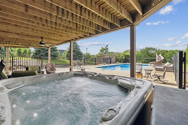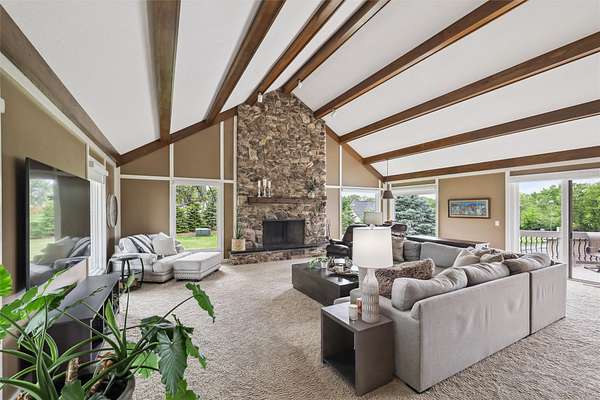 A 2.9 acre lot is the setting for this spacious two-story home with circle driveway, 4 BRs, 4 baths, and 5,734 SF including a finished walk-out basement. Features include a 20'x 40' inground salt-water pool, a 54'x 115' tennis/basketball court, hot tub, sauna, and a 36'x 24' 4-car detached garage with a 500 SF apartment. Interior features include a large vaulted beamed family room with a wood burning fireplace with floor-to-ceiling stone front; completely remodeled kitchen with walk-in pantry and deluxe appliances; private office and walk-out with large rec room with another wood-burning fireplace and wet bar, plus an exercise room. You have admired this iconic home. Now is the chance to own it.