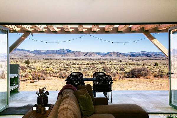New construction in an exclusive and private gated community 10 minutes to downtown Del Norte. Main floor living with multi generational floor plan. No stairs, handicap accessible throughout. Luxurious and private living in a peaceful country setting. 4 bedrooms, 3 full baths, 1 half bath, + office & an extra den/flex space on your own 98 acres. Kitchen is a cook’s and homesteader’s dream! Enjoy looking out at your acreage or watching the little ones play from your oversized farm sink with BrassPure Unlacquered Brass Kitchen. 11-foot hickory butcher block island with electricity, custom built by Columbine Woodworks in Monte Vista. Calacatta Martarazzo marble countertops complement the open shelving. Full-sized walk-in pantry to store groceries, canning, and preserves. GE matching appliances, Café freestanding propane double oven stove. Flawless five-piece primary bathroom with oversized soaking tub, multiple shower heads, leathered marble countertop, and a private water closet. Oversized 2.5 car garage, with a door to pull in your ATV/Side by side. Energy efficient boiler, appliances & construction including Anderson double pane windows. Floor to ceiling 18 foot 6 panel accordion style, quadruple pane doors from the living room to the back patio take advantage of the north facing pasture views as well as the cool summer breezes. Ready to build additional accessory dwelling unit with plans, well, septic, electricity in place, minimum 1,700 sq ft per HOA. Bring your all your animals. Domestic well allows for 1 acre of watering, a homesteader’s delight, ample opportunity for gardening. Custom Lusa lighting, day & night settings & dimmers to complement the ample natural sunlight. Galaxy White granite countertops in the jack-n-jill bathroom, knotty alder solid wood doors and trim throughout. Walnut accents in office. Vermont Casting free standing wood burning stove, with floor to ceiling stone work in the living room. Sold mostly furnished; start enjoying now!